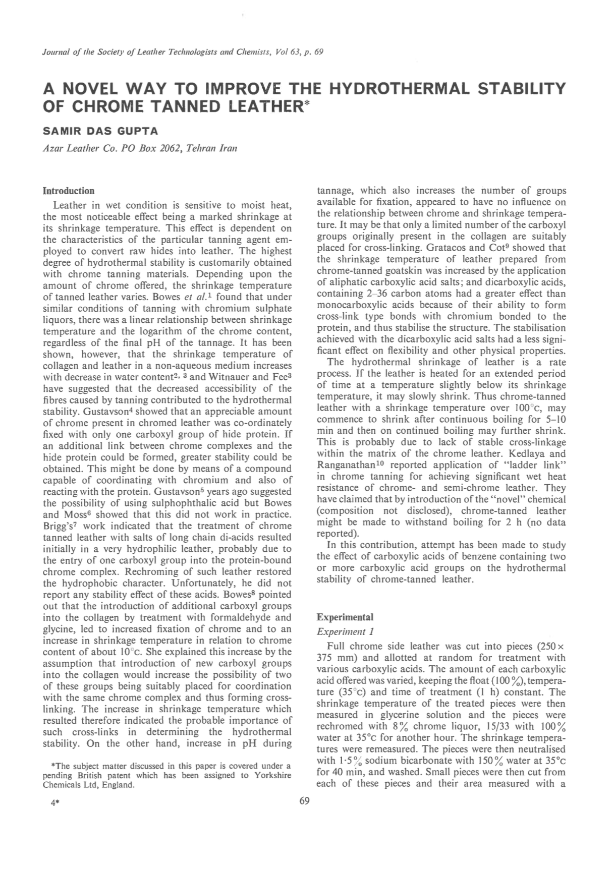 A Novel Way to Improve the Hydrothermal Stability of Chrome Tanned Leather