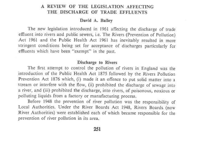 A Review Of The Legislation Affecting The Discharge Of Trade Effluents