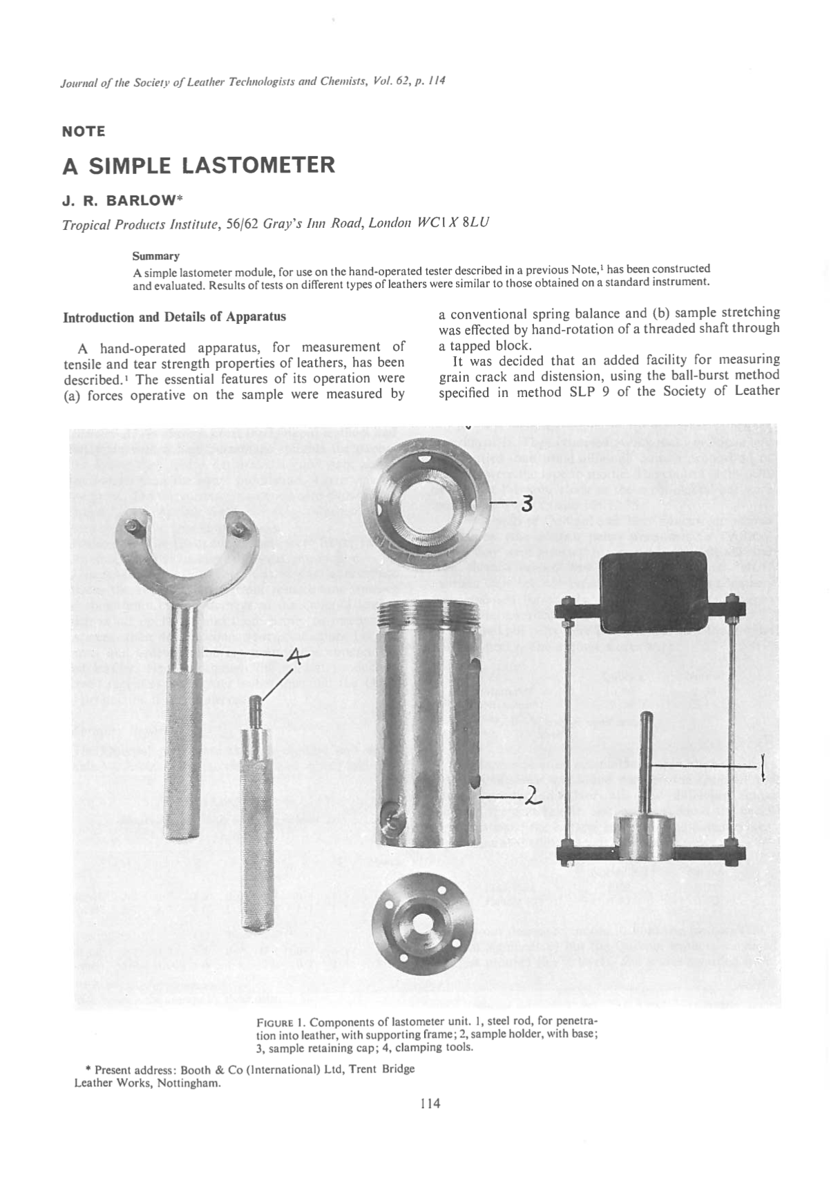 A simple lastometer module, for use on the hand-operated tester described in a previous Note, has been constructed and evaluated. Results of tests on different types of leathers were similar to those obtained on a standard instrument.