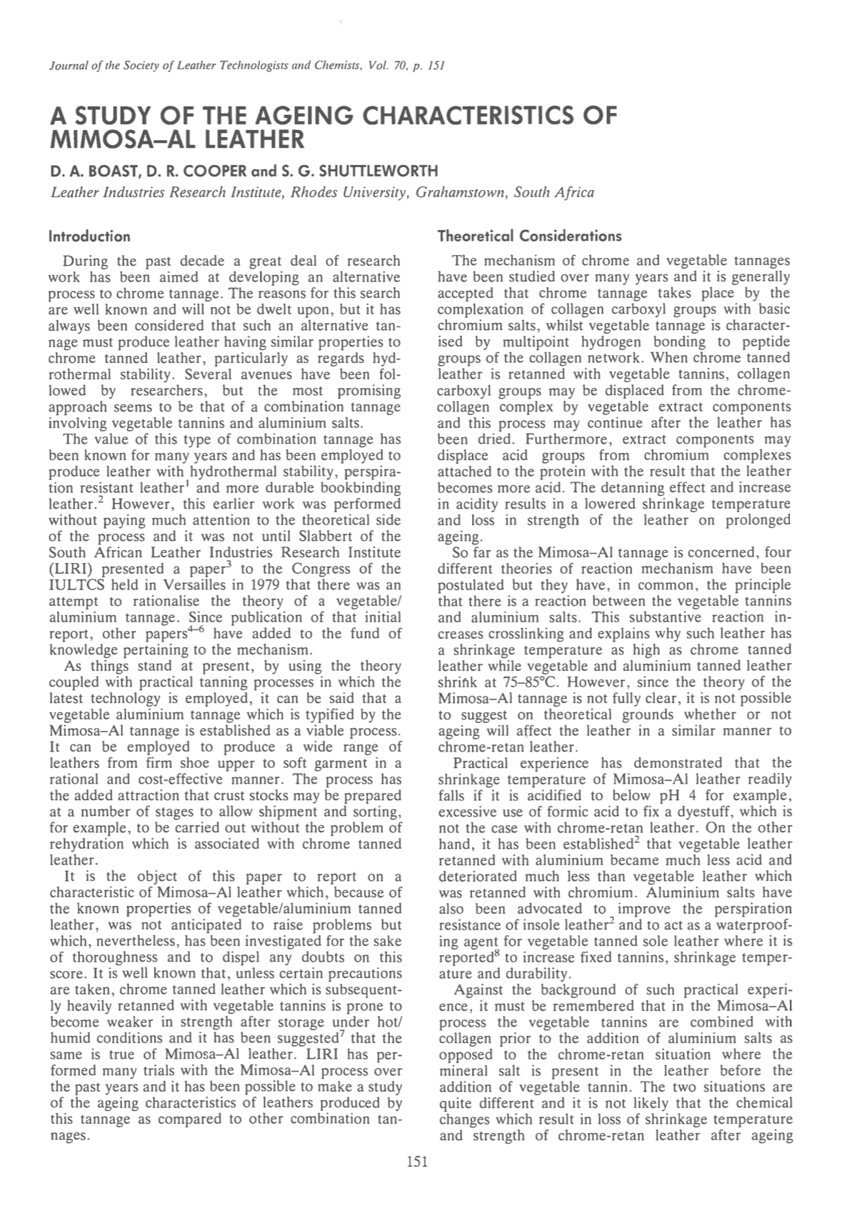 D. A. BOAST; D. R. COOPER; S. G. SHUTTLEWORTH