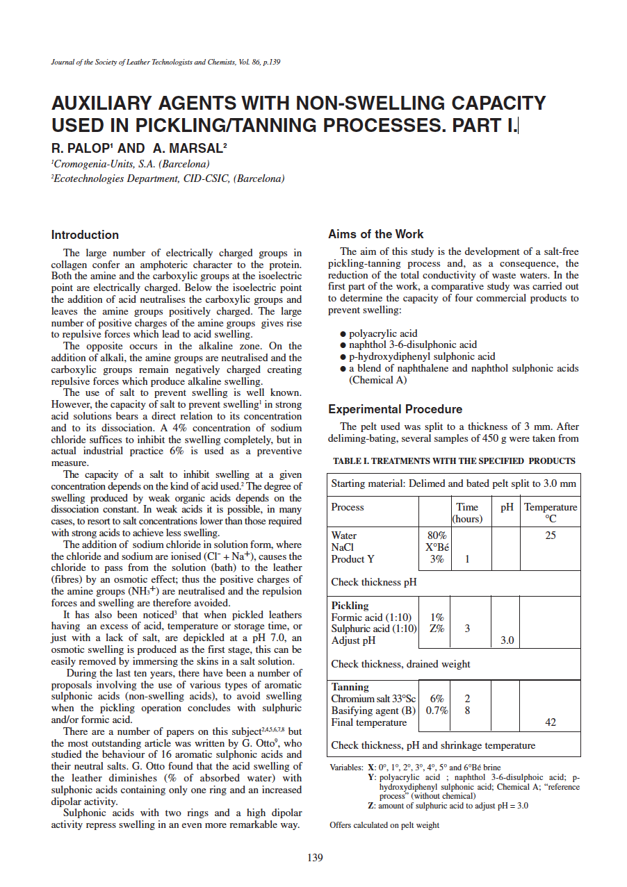 Auxiliary Agents With Non-Swelling Capacity Used In Pickling/Tanning Processes. Part I.