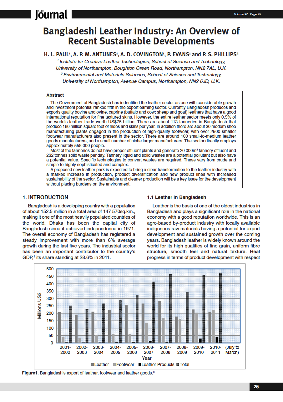 The Government of Bangladesh has indentified the leather sector as one with considerable growth and investment potential ranked fifth in the export earning sector. Currently Bangladesh produces and exports quality bovine and ovine, caprine (buffalo and cow; sheep and goat) leathers that have a good international reputation for fine textured skins. However, the entire leather sector meets only 0.5% of the world’s leather trade worth US$75 billion. There are about 113 tanneries in Bangladesh that produce 180 million square feet of hides and skins per year. In addition there are about 30 modern shoe manufacturing plants engaged in the production of high-quality footwear, with over 2500 smaller footwear manufacturers also present in the sector. There are around 100 small-to-medium leather goods manufacturers, and a small number of niche larger manufacturers. The sector directly employs approximately 558 000 people.