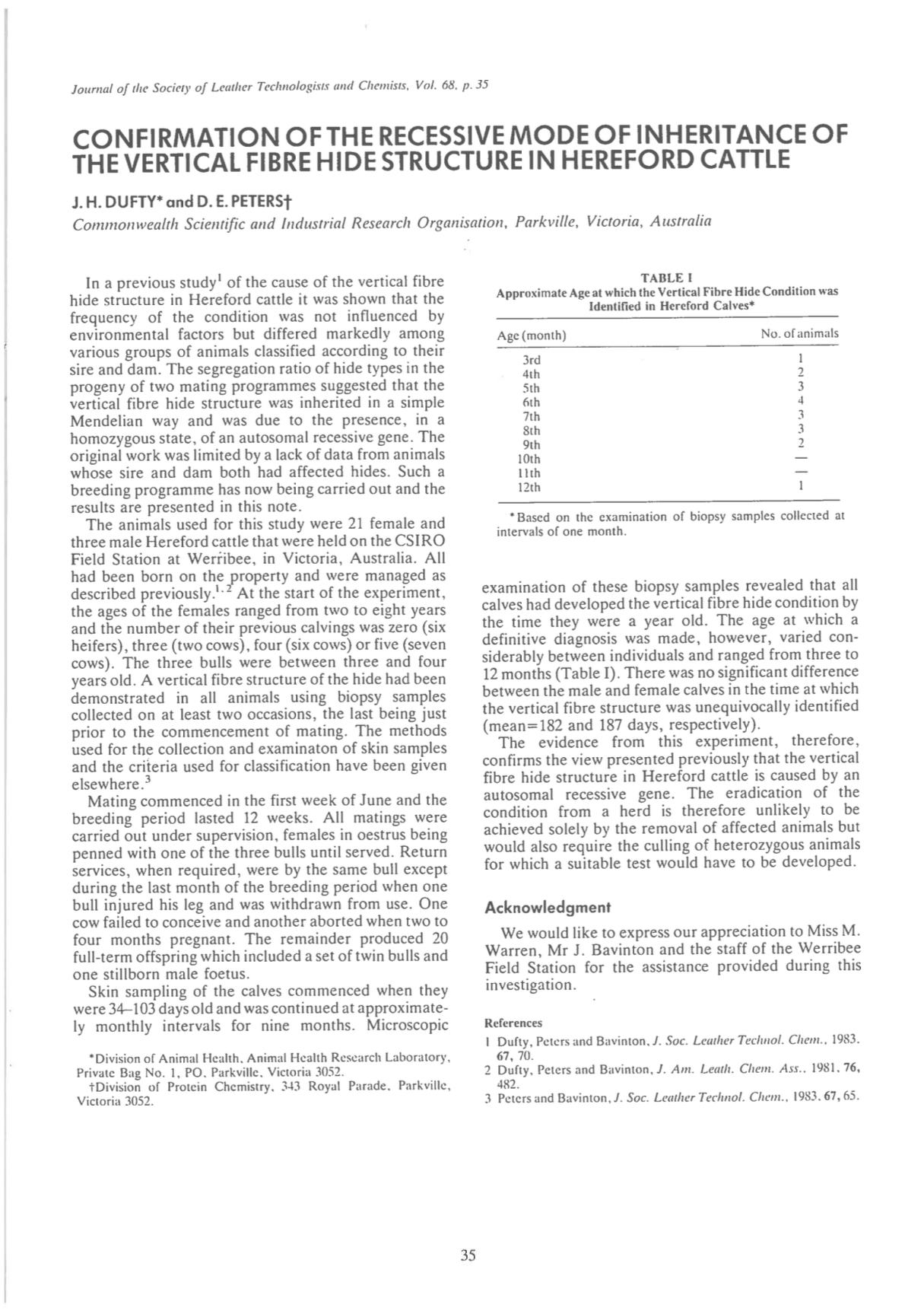 Confirmation of the Recessive Mode of Inheritance of the Vertical Fibre Hide Structure in Hereford Cattle