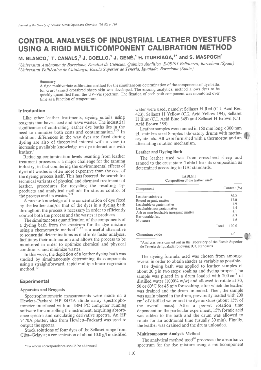 M. BLANCO; T. CANALS; J. COELLO; J. GENE; H. ITURRIAGA; S. MASPOCH