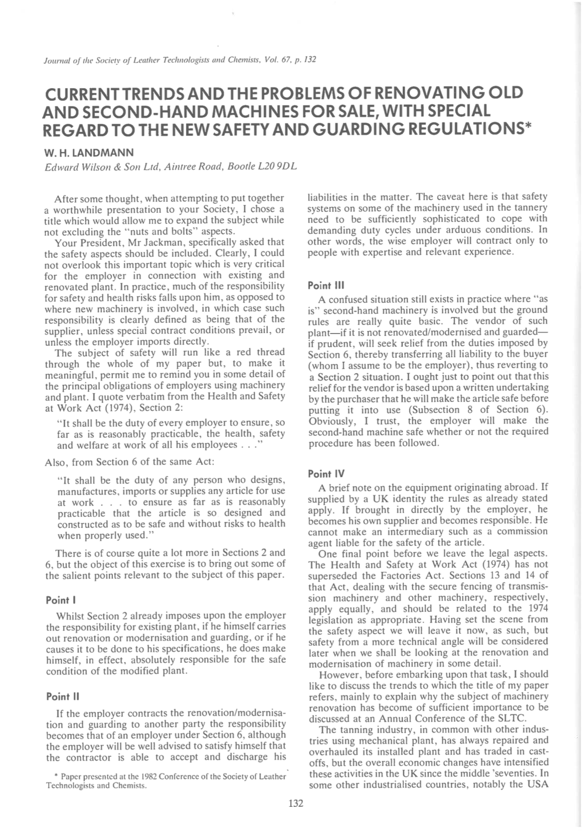 Current Trends and the Problems of Renovating Old and Second-Hand Machines for Sale, with Special Regard to the New Safety and Guarding Regulations