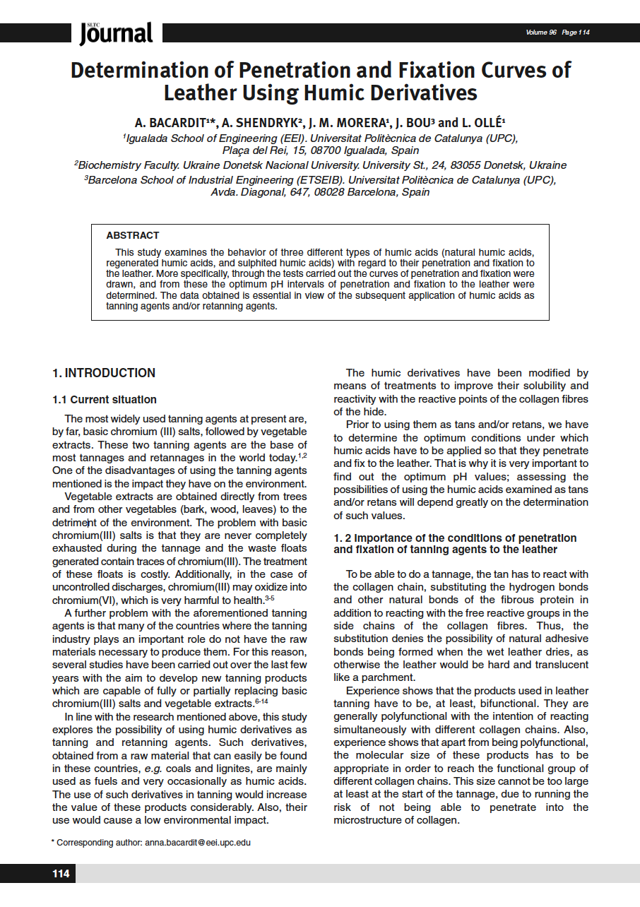 Determination of Penetration and Fixation Curves of Leather Using Humic Derivatives