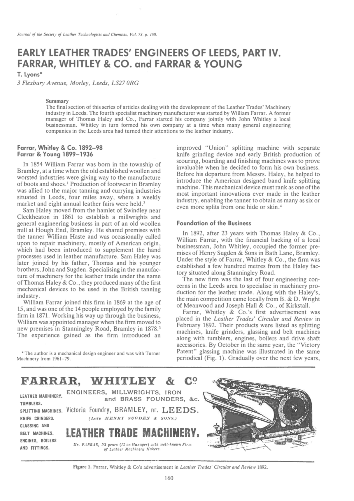 Early Leather Trades’ Engineers of Leeds, Part IV. Farrar, Whitley & Co. and Farrar & Young