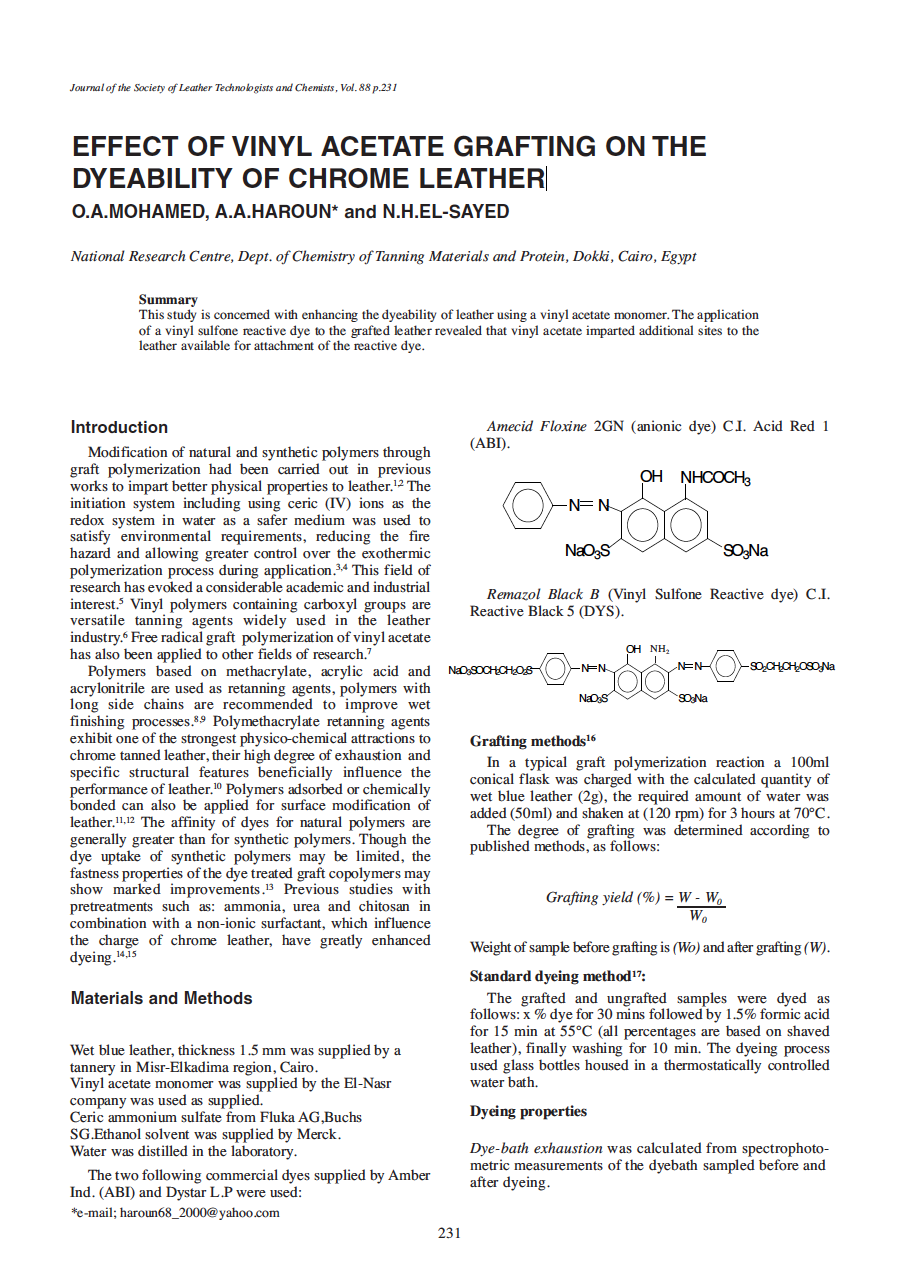 Effect Of Vinyl Acetate Grafting On The Dyeability Of Chrome Leather