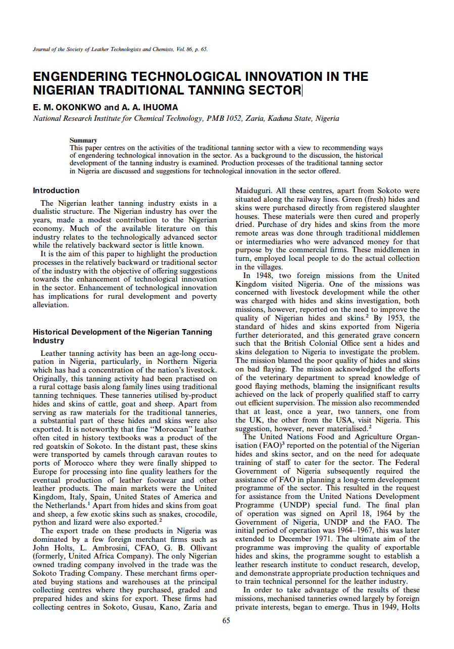 Engendering Technological Innovation In The Nigerian Traditional Tanning Sector