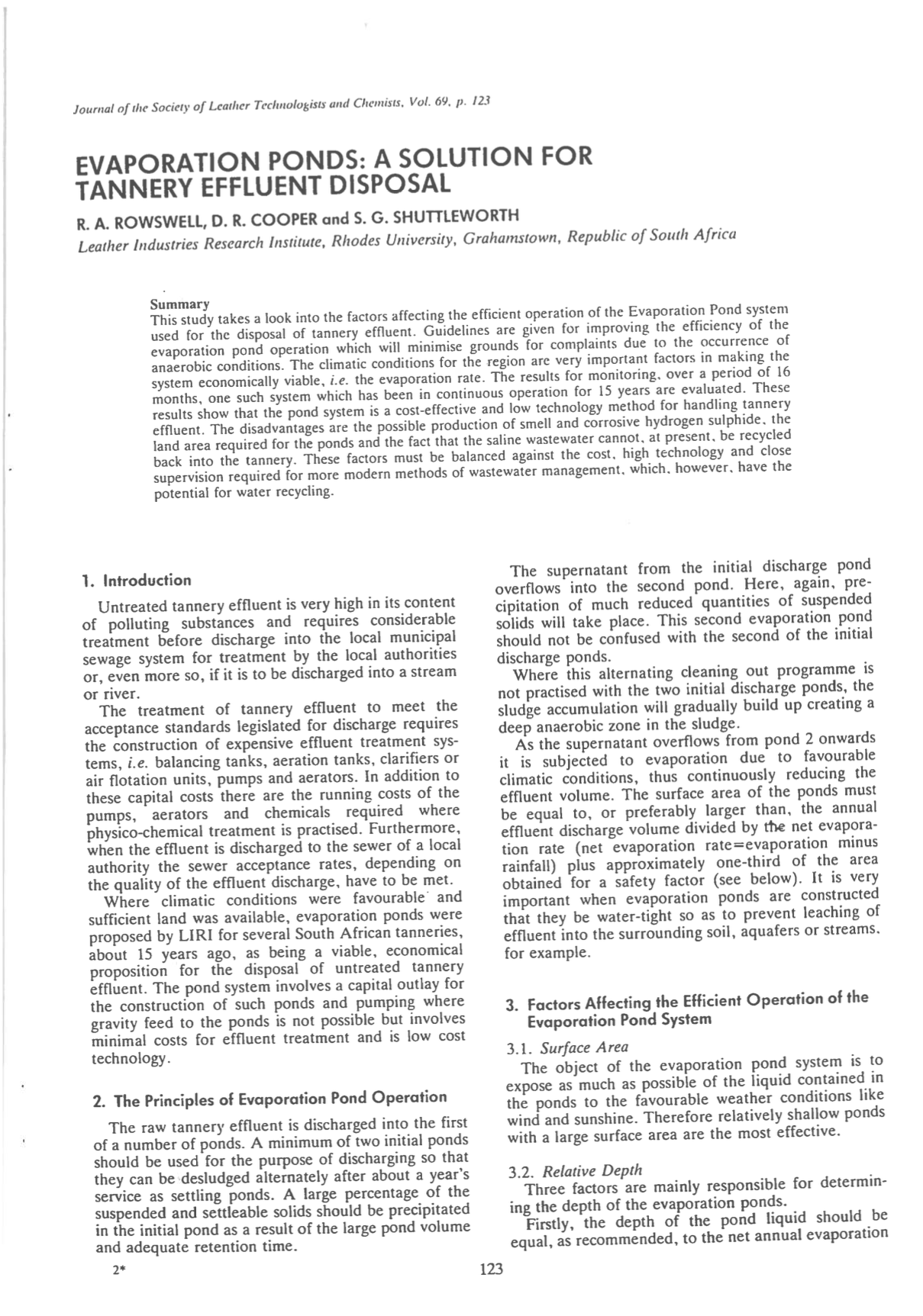 R. A. ROWSWELL; D. R. COOPER; S. G. SHUTTLEWORTH