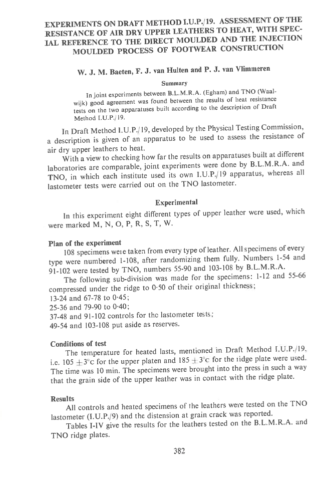 Experiments On Draft Method I.U.P./19. Assessment Of The Resistance Of Air Dry Upper Leathers To Heat, With Special Reference To The Direct Moulded And The Injection Moulded Process Of Footwear Construction