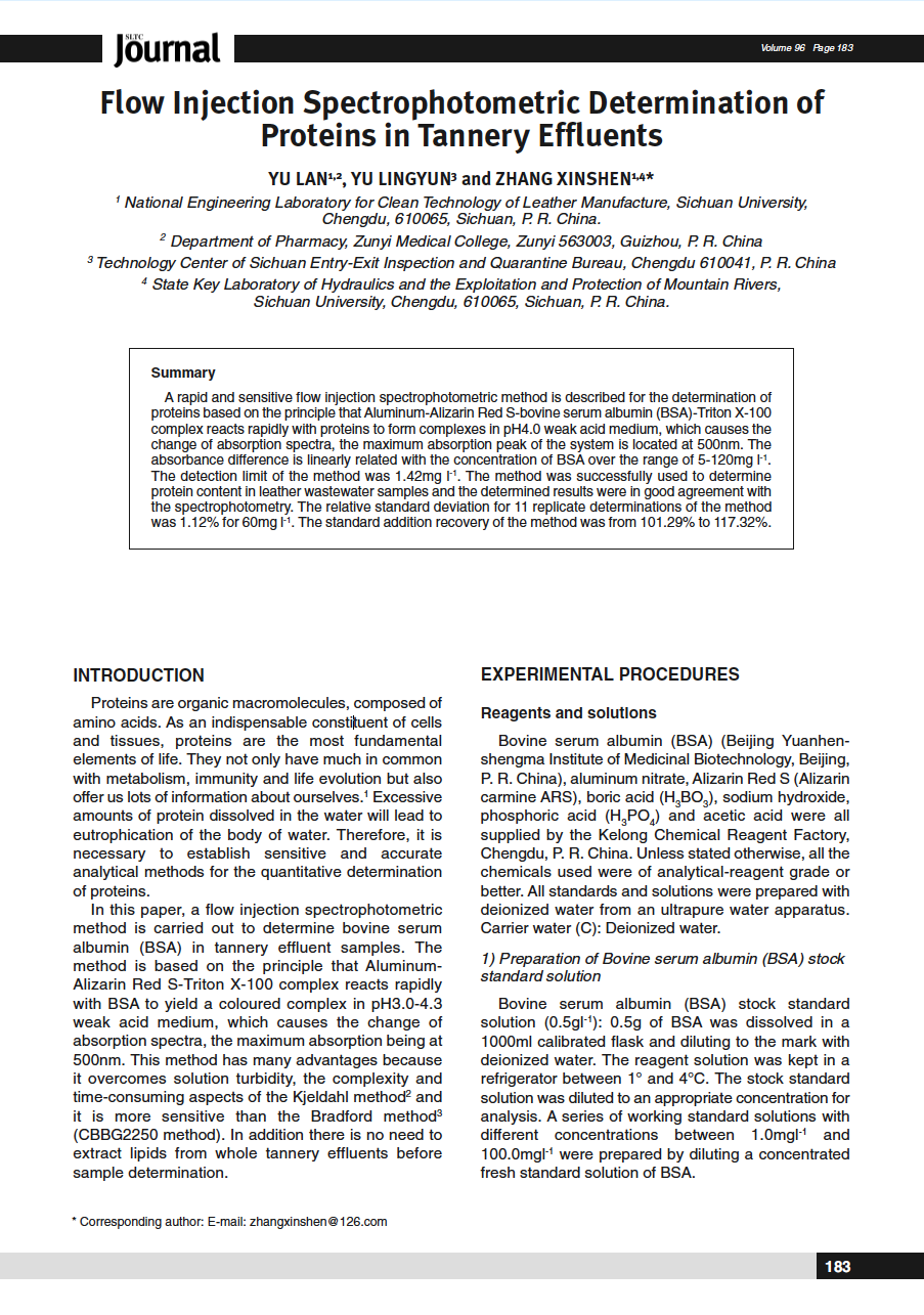 Flow Injection Spectrophotometric Determination of Proteins in Tannery Effluents
