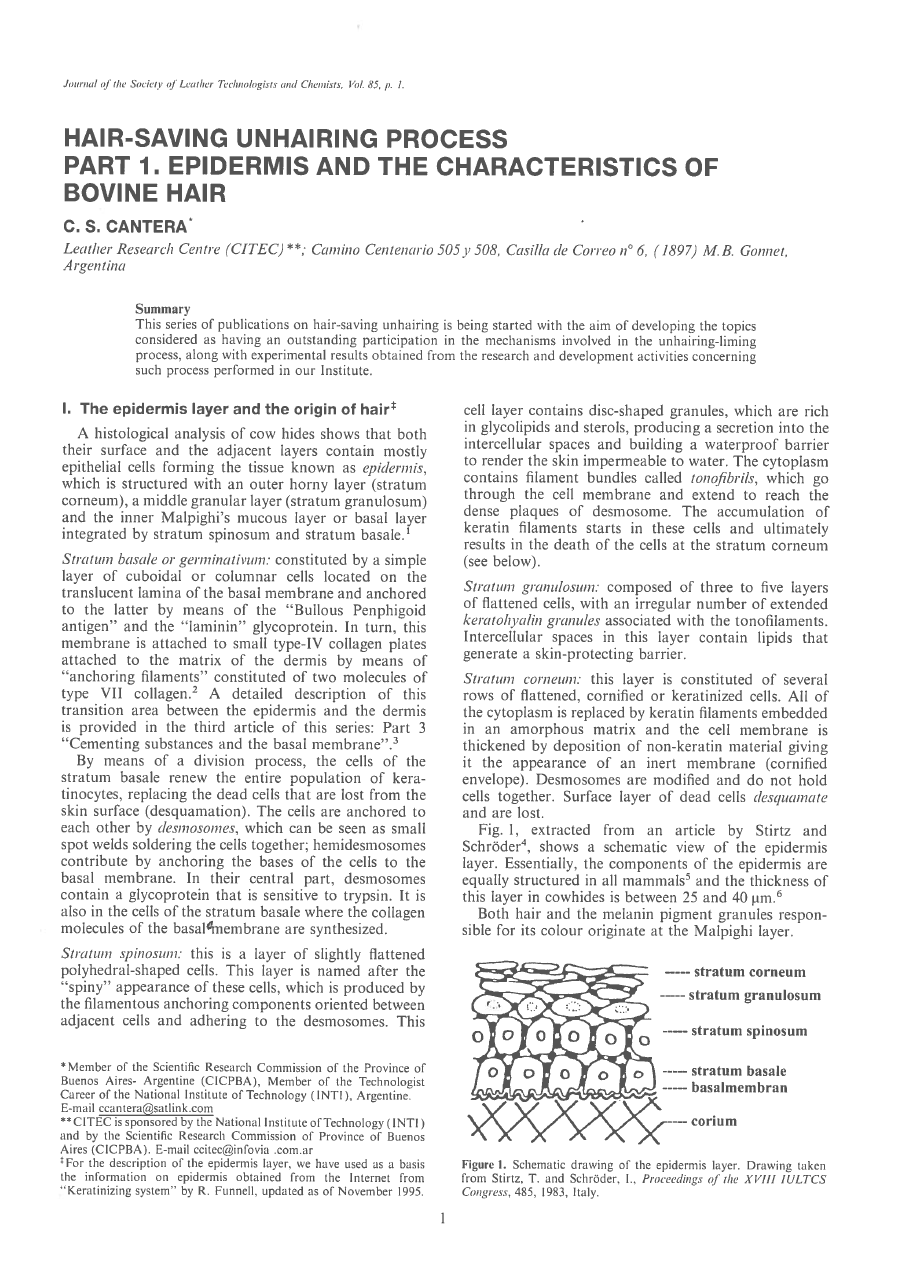 Hair-Saving Unhairing Process Part 1. Epidermis And The Characteristics Of Bovine Hair