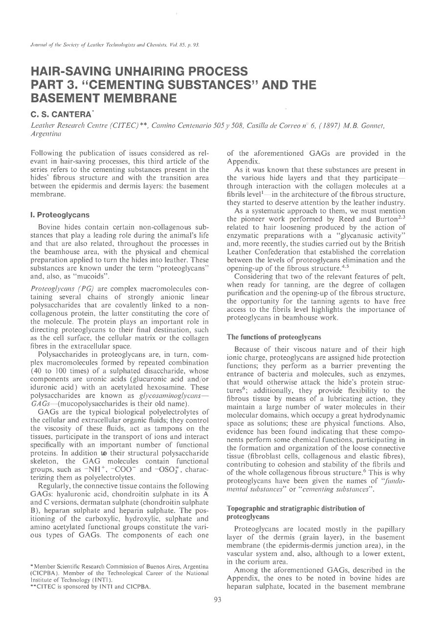 Following the publication of issues considered as rel evant in hair-saving processes, this third article of the series refers to the cementing substances present in the hides’ fibrous structure and with the transition area between the epidermis and dermis layers: the basement membrane.