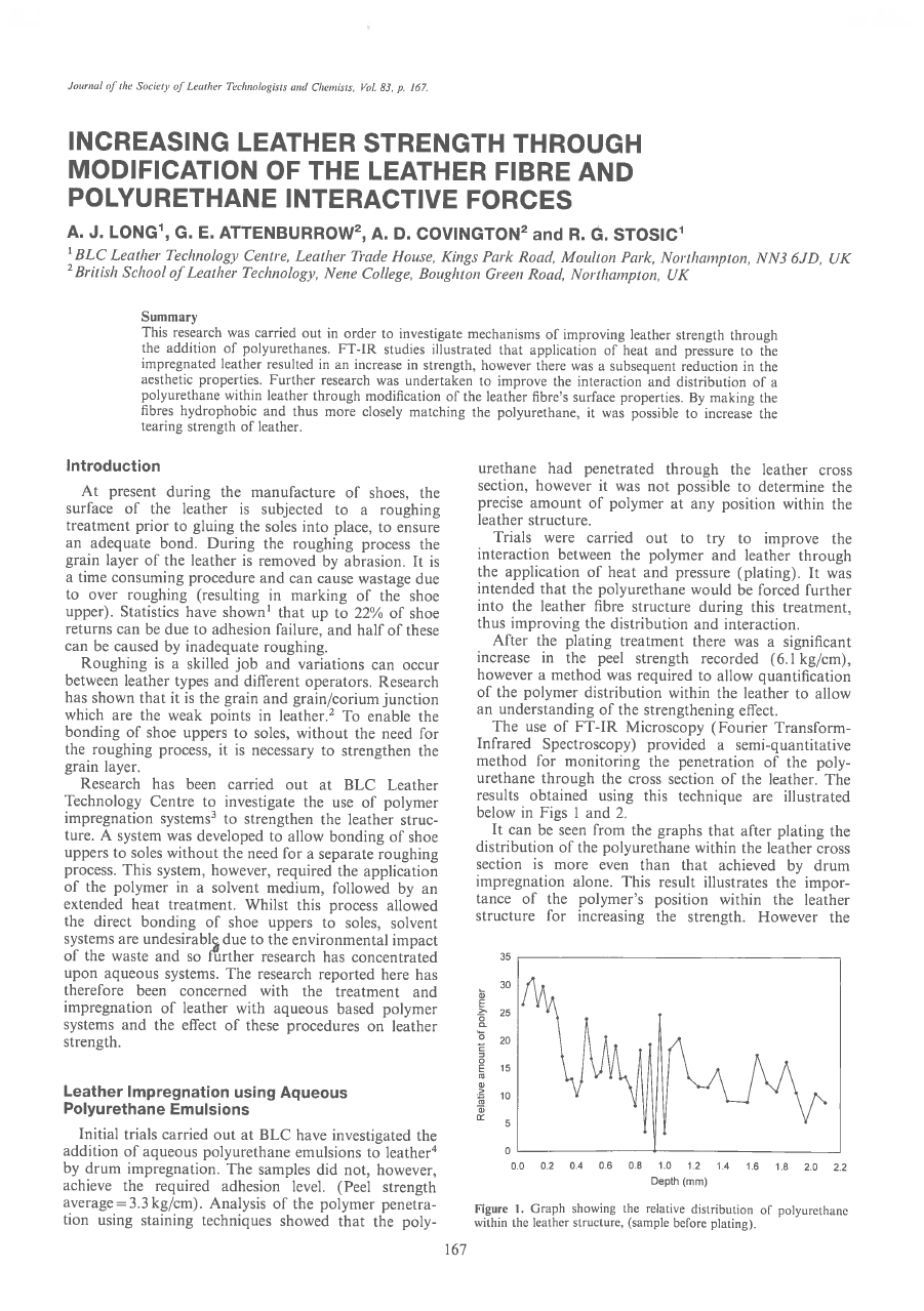 This research was carried out in order to investigate mechanisms of improving leather strength through the addition of polyurethanes. FT-IR studies illustrated that application of heat and pressure to the impregnated leather resulted in an increase in strength, however there was a subsequent reduction in the aesthetic properties. Further research was undertaken to improve the interaction and distribution of a polyurethane within leather through modification of the leather fibre’s surface properties. By making the fibres hydrophobic and thus more closely matching the polyurethane, it was possible to increase the tearing strength of leather.
