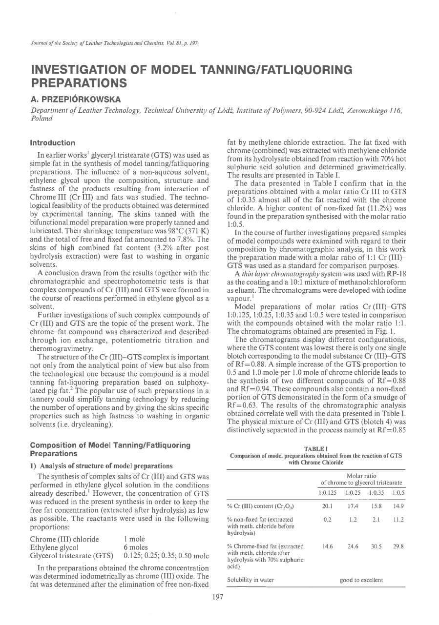 Investigation Of Model Tanning/Fatliquoring Preparations