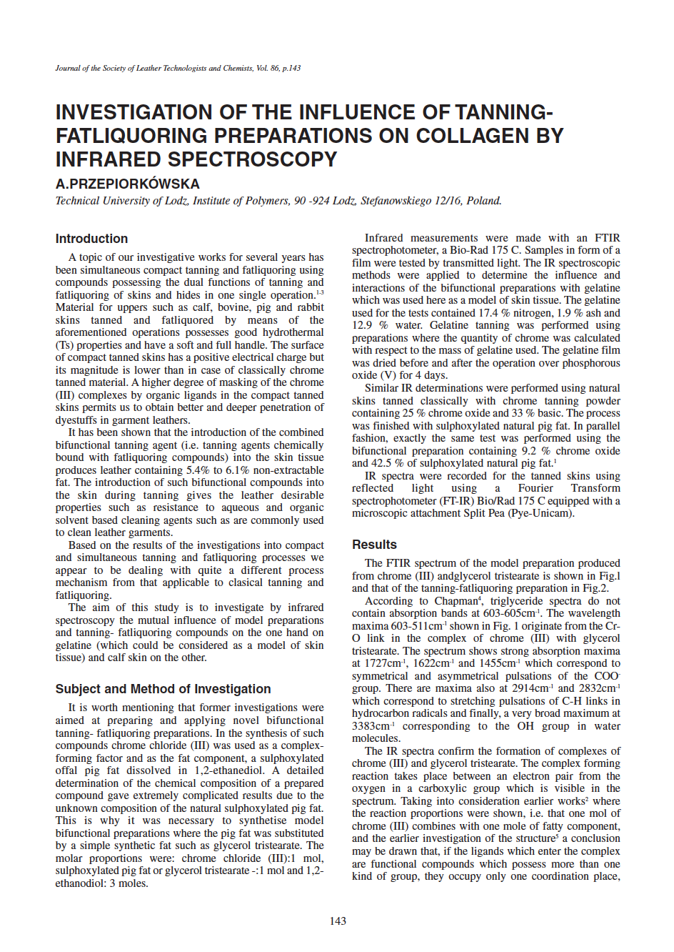 Investigation Of The Influence Of Tanningfatliquoring Preparations On Collagen By Infrared Spectroscopy