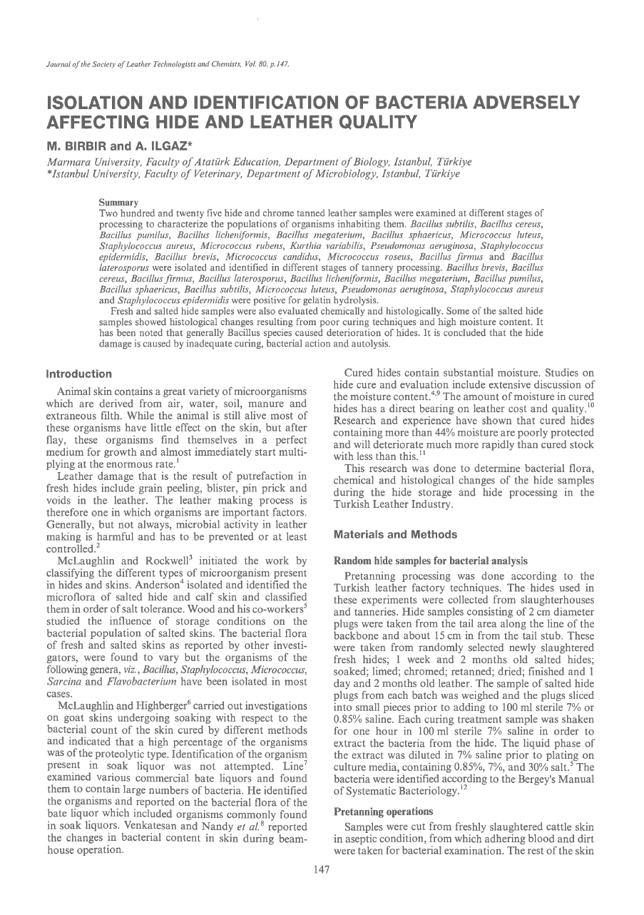 Isolation And Identification Of Bacteria Adversely Affecting Hide And Leather Quality