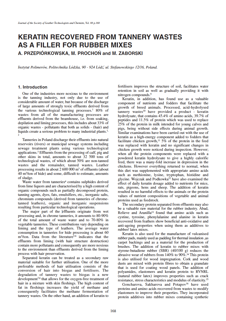 Keratin Recovered From Tannery Wastes As A Filler For Rubber Mixes