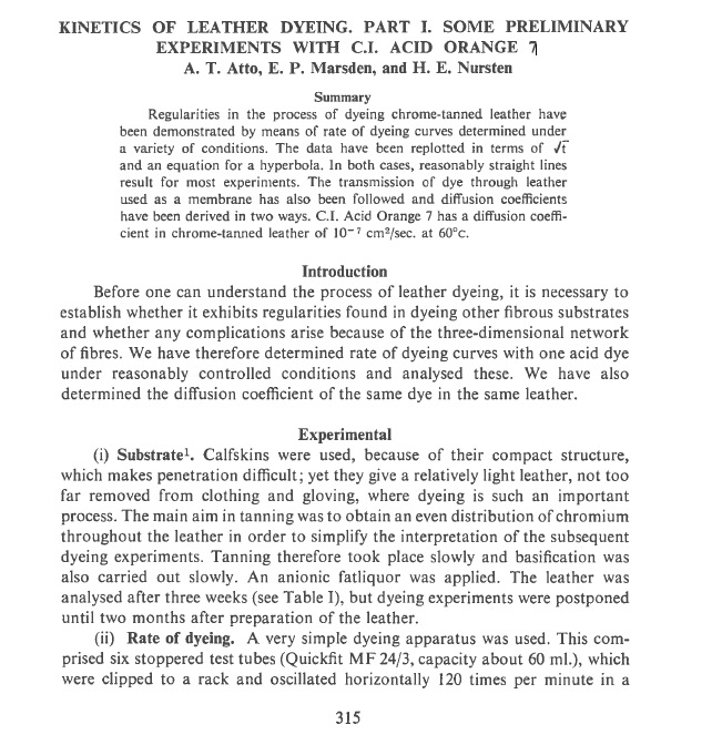 Kinetics Of Leather Dyeing. Part I. Some Preliminary Experiments With C.I. Acid Orange 7