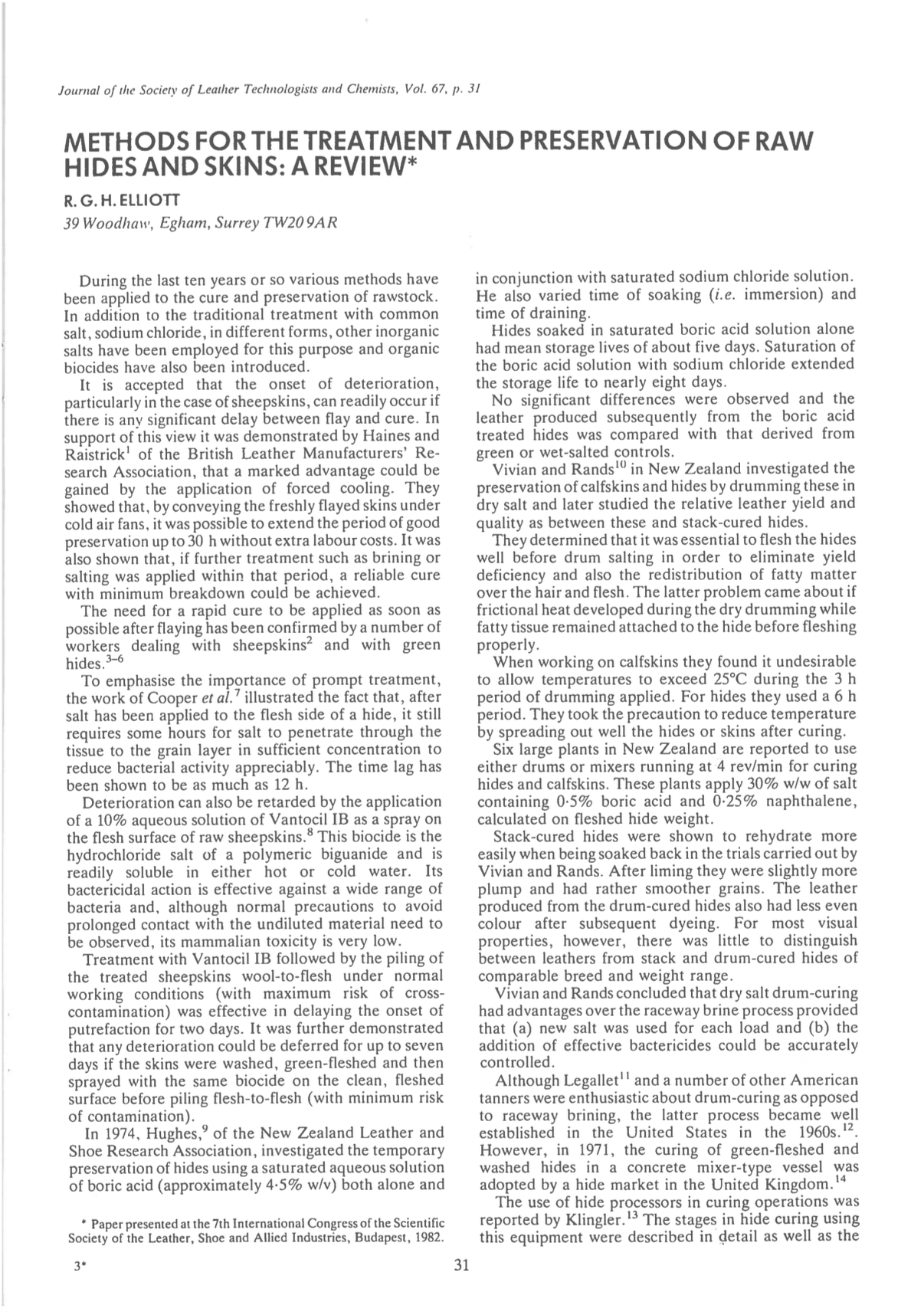 Methods for the Treatment and Preservation of Raw Hides and Skins: A Review