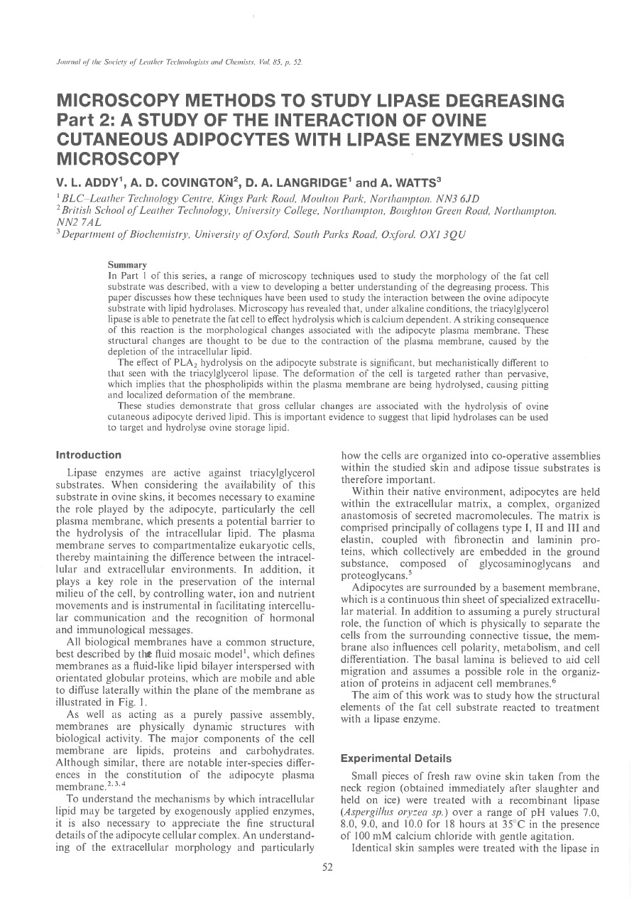 Microscopy Methods To Study Lipase Degreasing Part 2: A Study Of The Interaction Of Ovine Cutaneous Adipocytes With Lipase Enzymes Using Microscopy