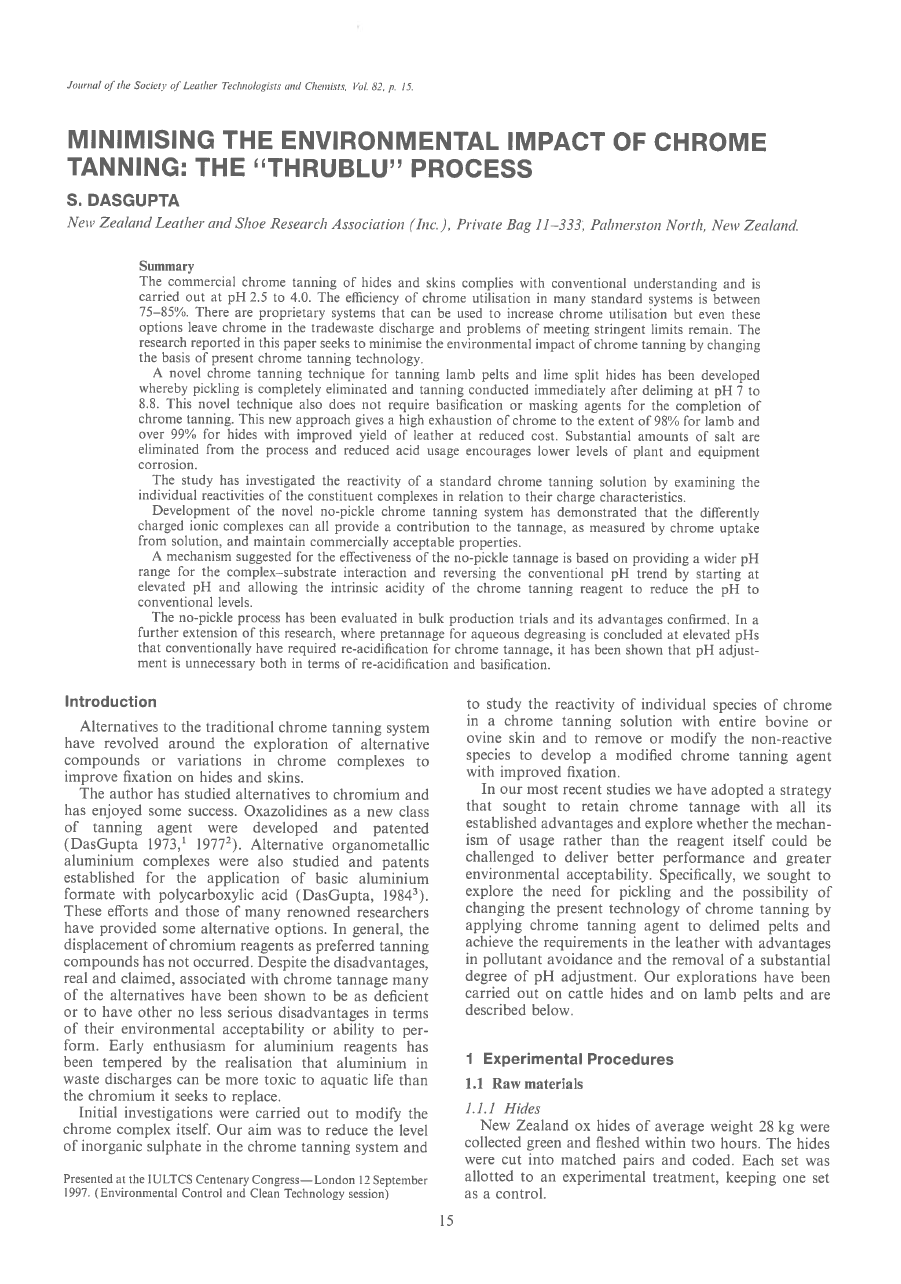 Development of the novel no-pickle chrome tanning system has demonstrated that the differently charged ionic complexes can all provide a contribution to the tannage, as measured by chrome uptake from solution, and maintain commercially acceptable properties.