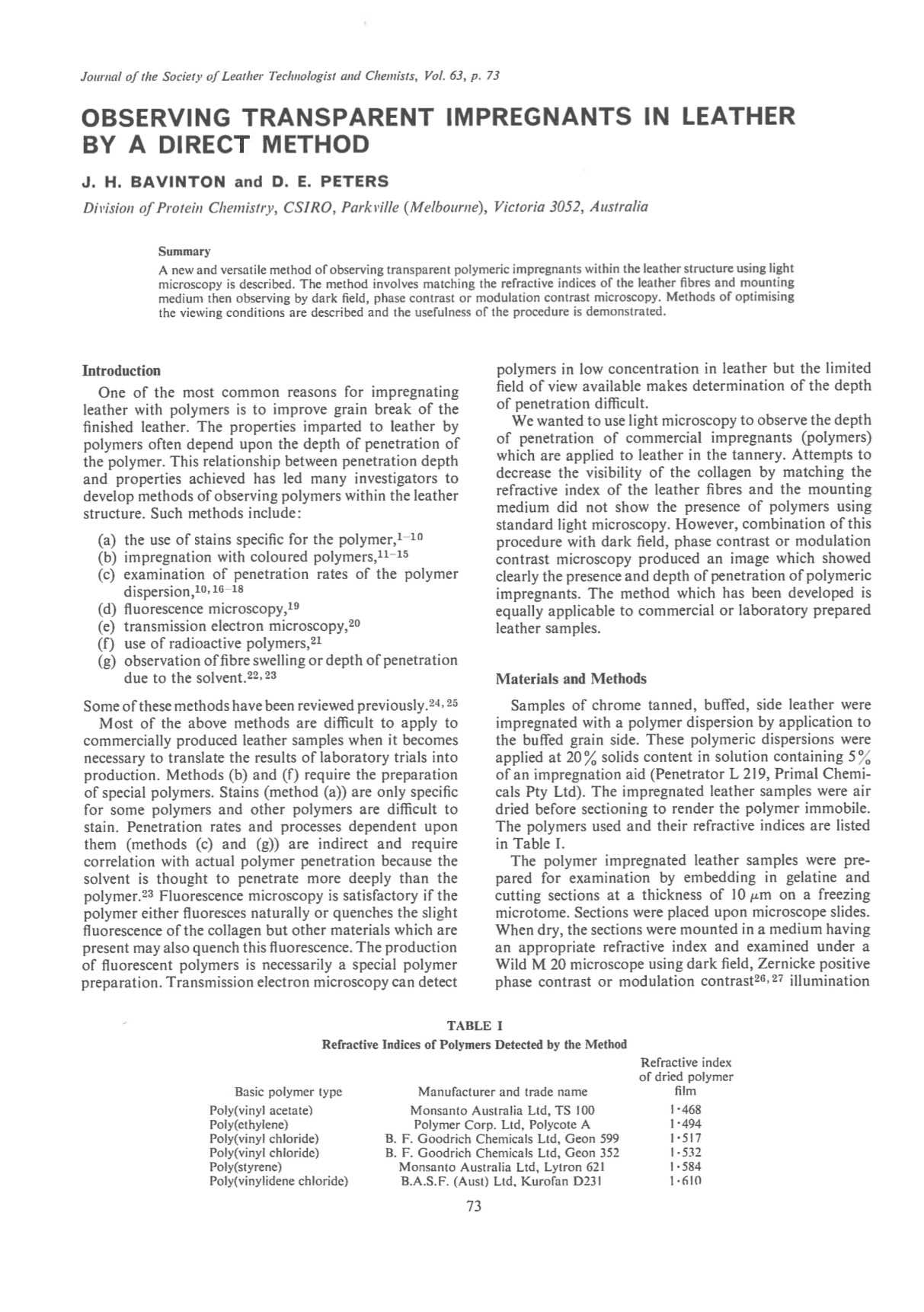 J. H. BAVINTON; D. E. PETERS