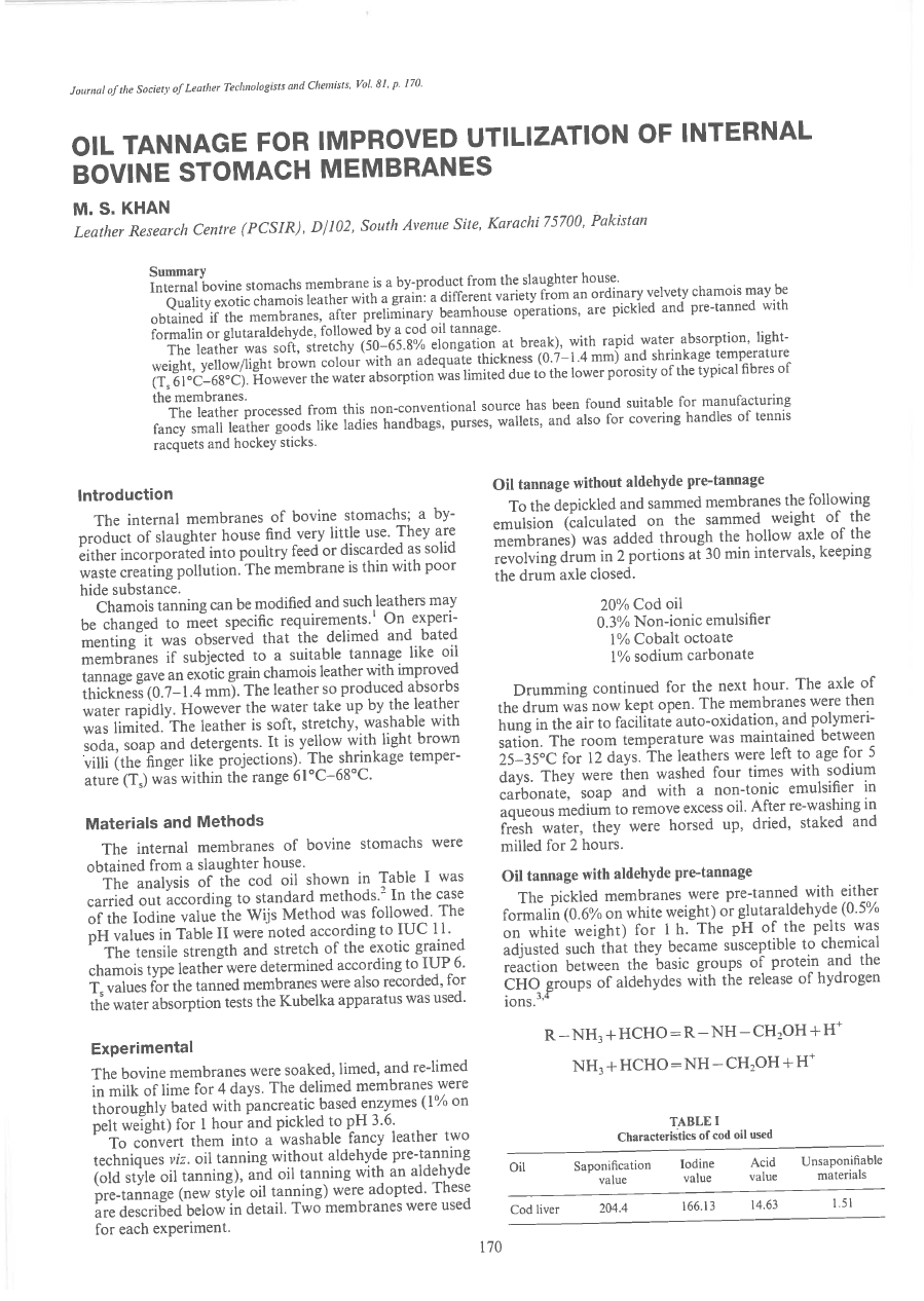 Oil Tannage For Improved Utilization Of Internal Bovine Stomach Membranes