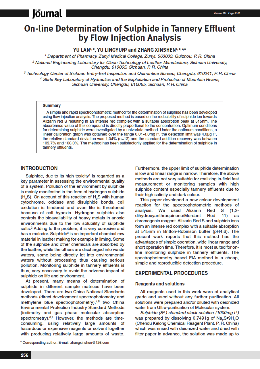 On-line Determination of Sulphide in Tannery Effluent by Flow Injection Analysis