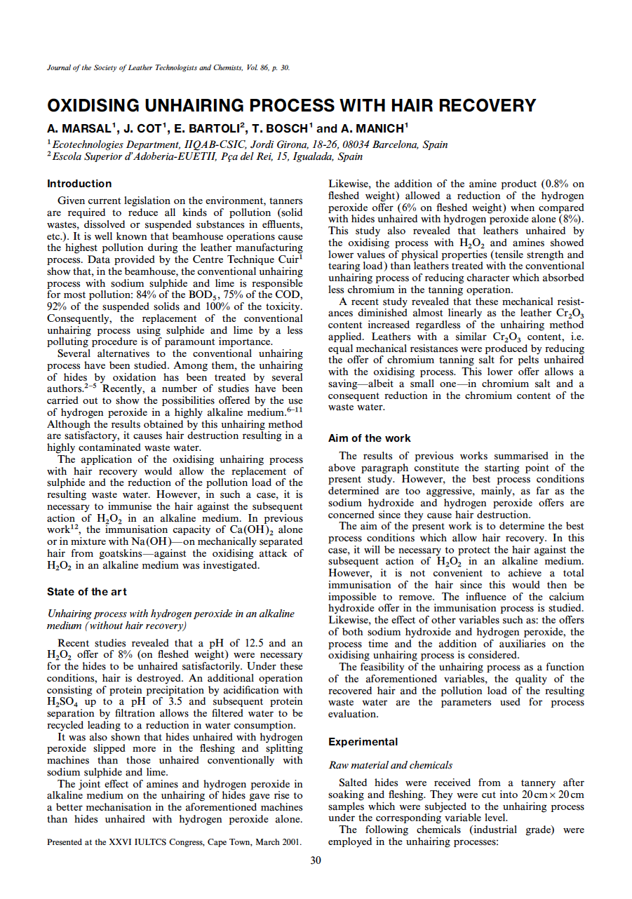 Oxidising Unhairing Process With Hair Recovery