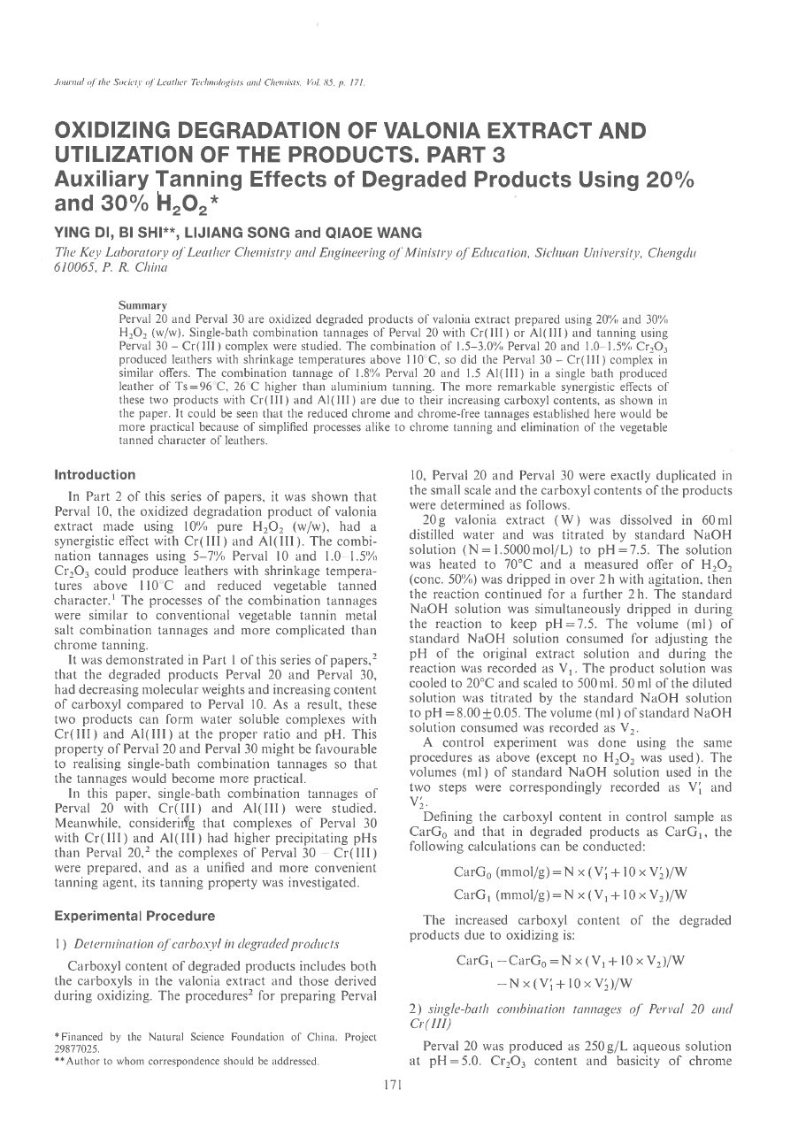 Oxidizing Degradation Of Valonia Extract And Utilization Of The Products. Part 3 Auxiliary Tanning Effects Of Degraded Products Using 20% And 30% H2O2