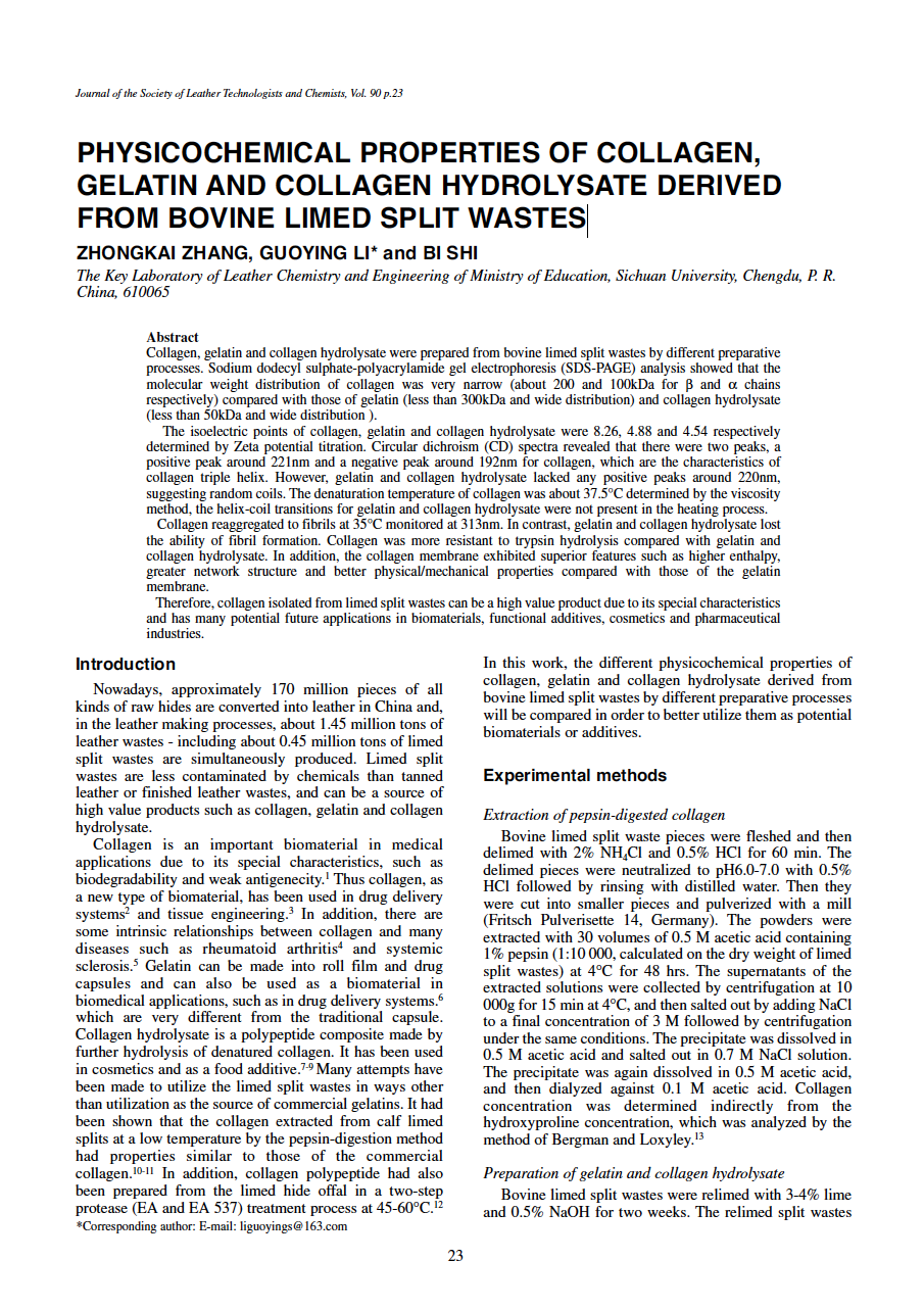Therefore, collagen isolated from limed split wastes can be a high value product due to its special characteristics and has many potential future applications in biomaterials, functional additives, cosmetics and pharmaceutical industries.