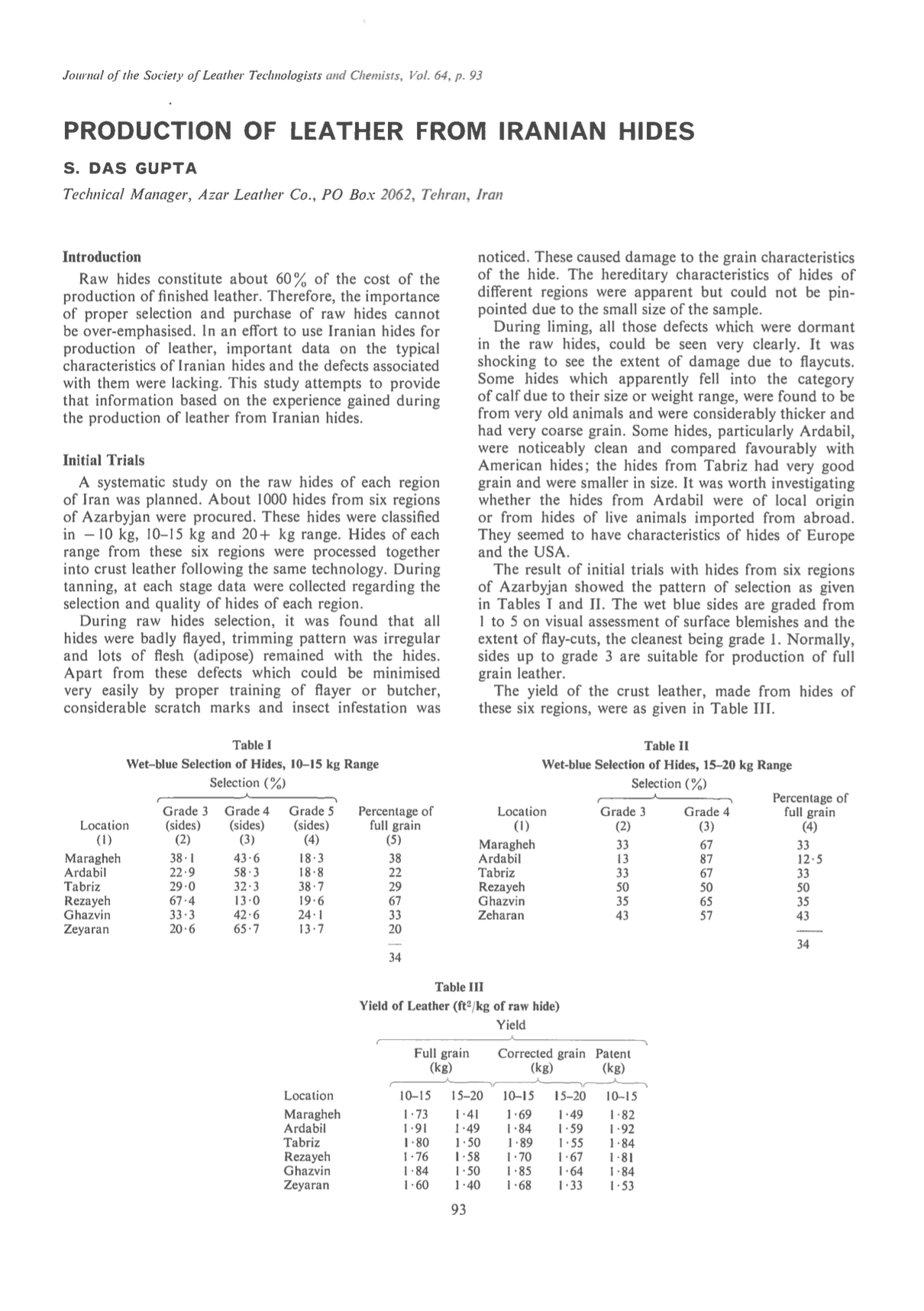Production of Leather from Iranian Hides
