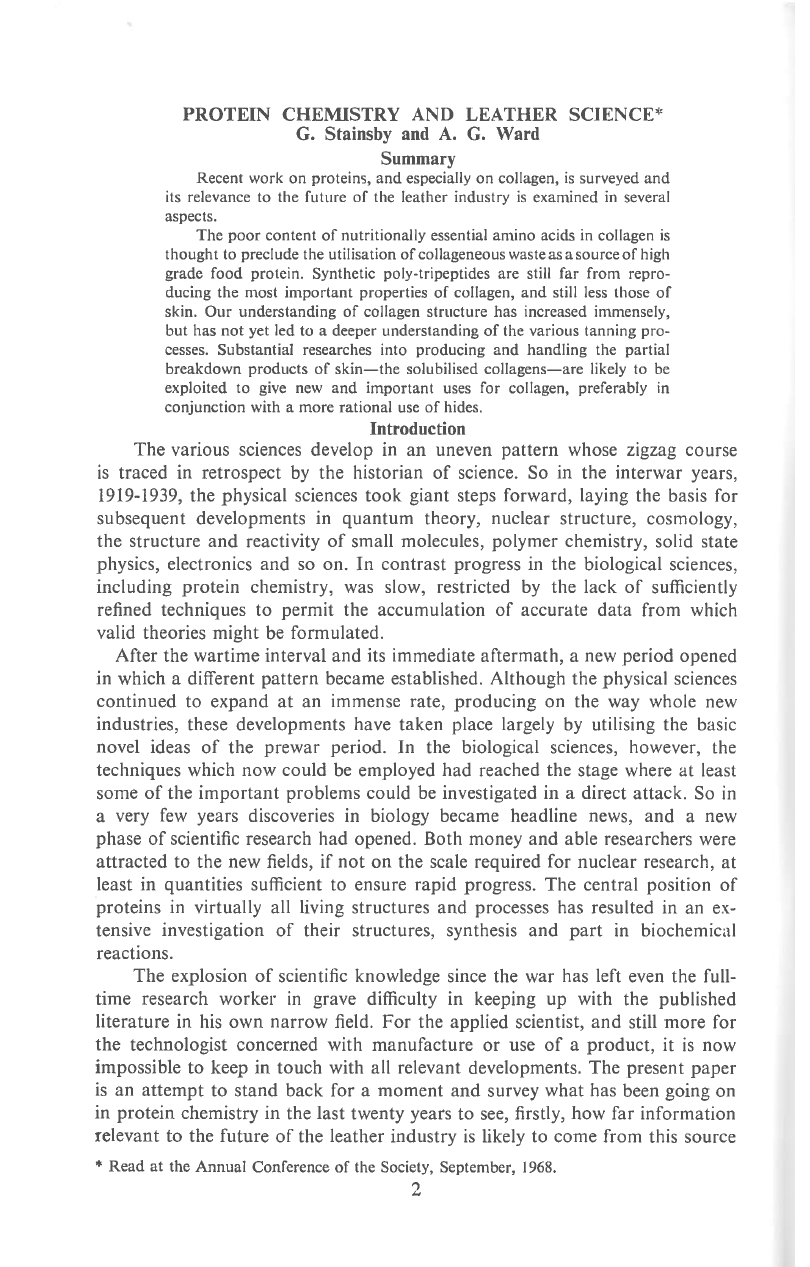 Recent work on proteins, and especially on collagen, is surveyed and its relevance to the future of the leather industry is examined in several aspects.