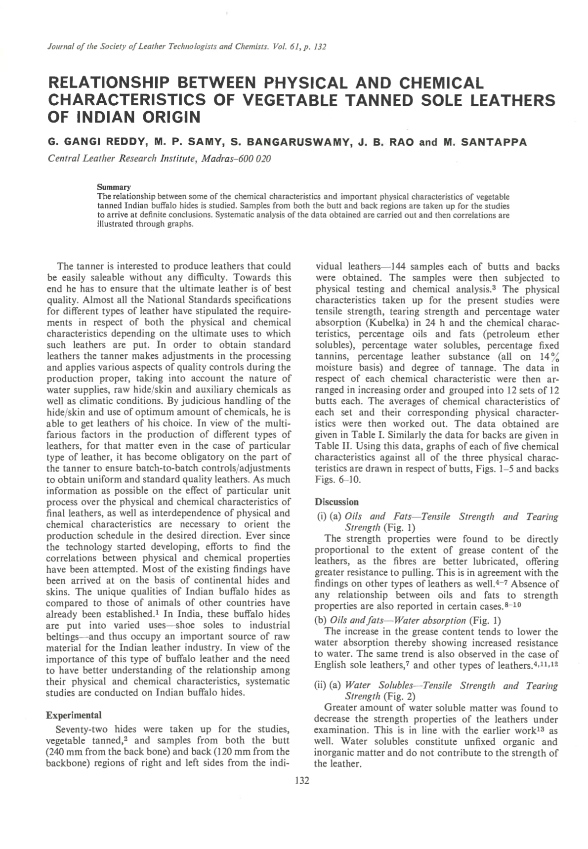 The relationship between some of the chemical characteristics and important physical characteristics of vegetable tanned Indian buffalo hides is studied. Samples from both the butt and back regions are taken up for the studies to arrive at definite conclusions. Systematic analysis of the data obtained are carried out and then correlations are illustrated through graphs.