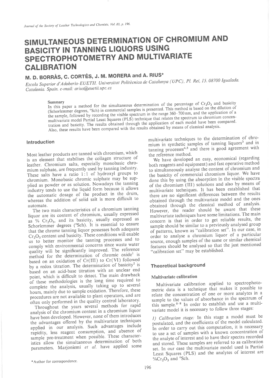 Simultaneous Determination Of Chromium And Basicity In Tanning Liquors Using Spectrophotometry And Multivariate Calibration