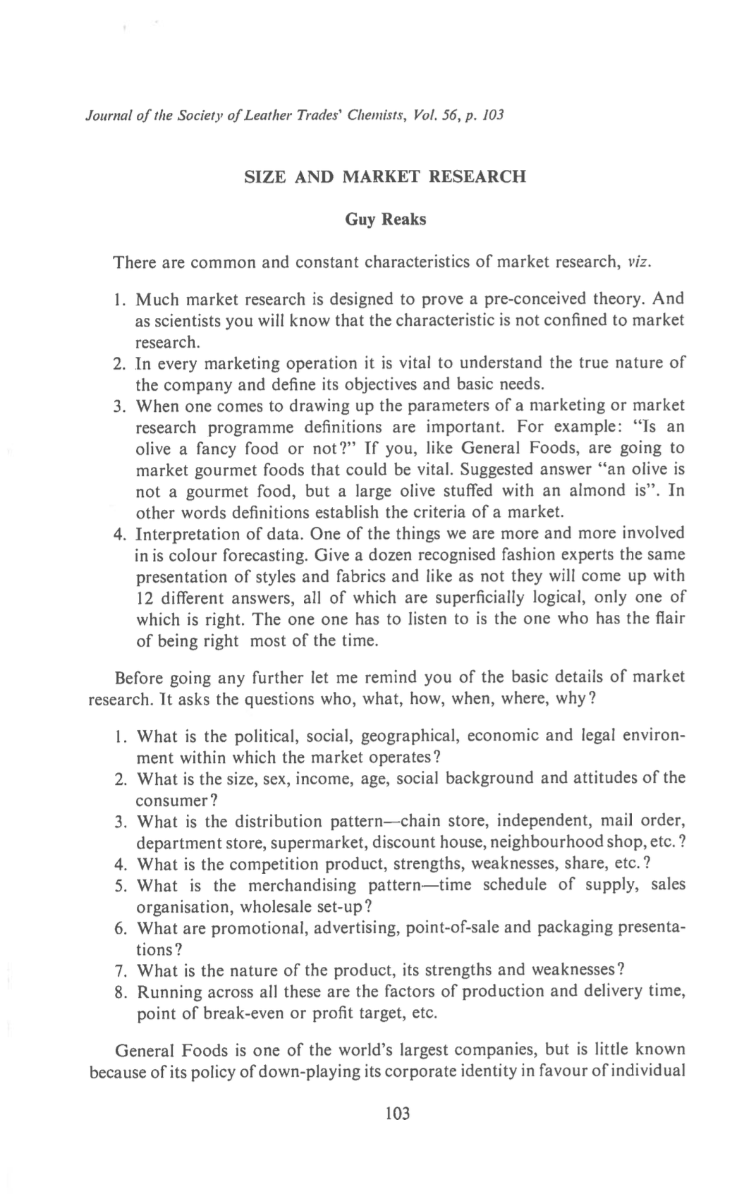 Size and Market Research