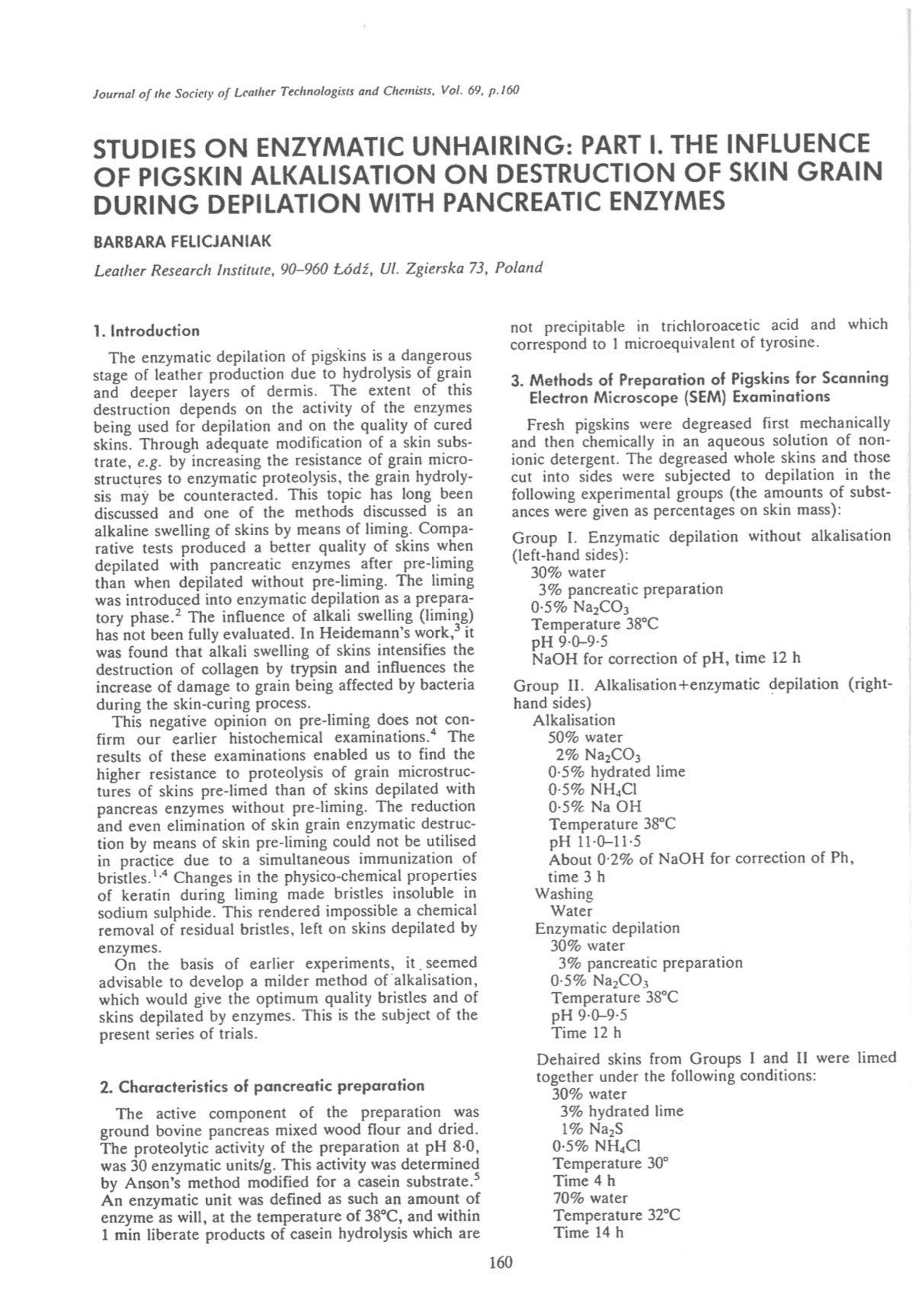 Studies on Enzymatic Unhairing: Part I. The Influence of Pigskin Alkalisation on Destruction of Skin Grain During Depilation with Pancreatic Enzymes