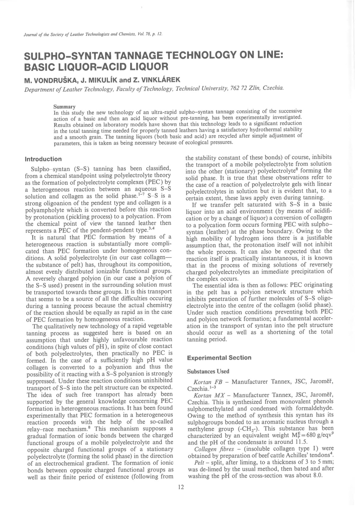 M. VONDRUSKA; J. MIKULIK; Z. VINKLAREK