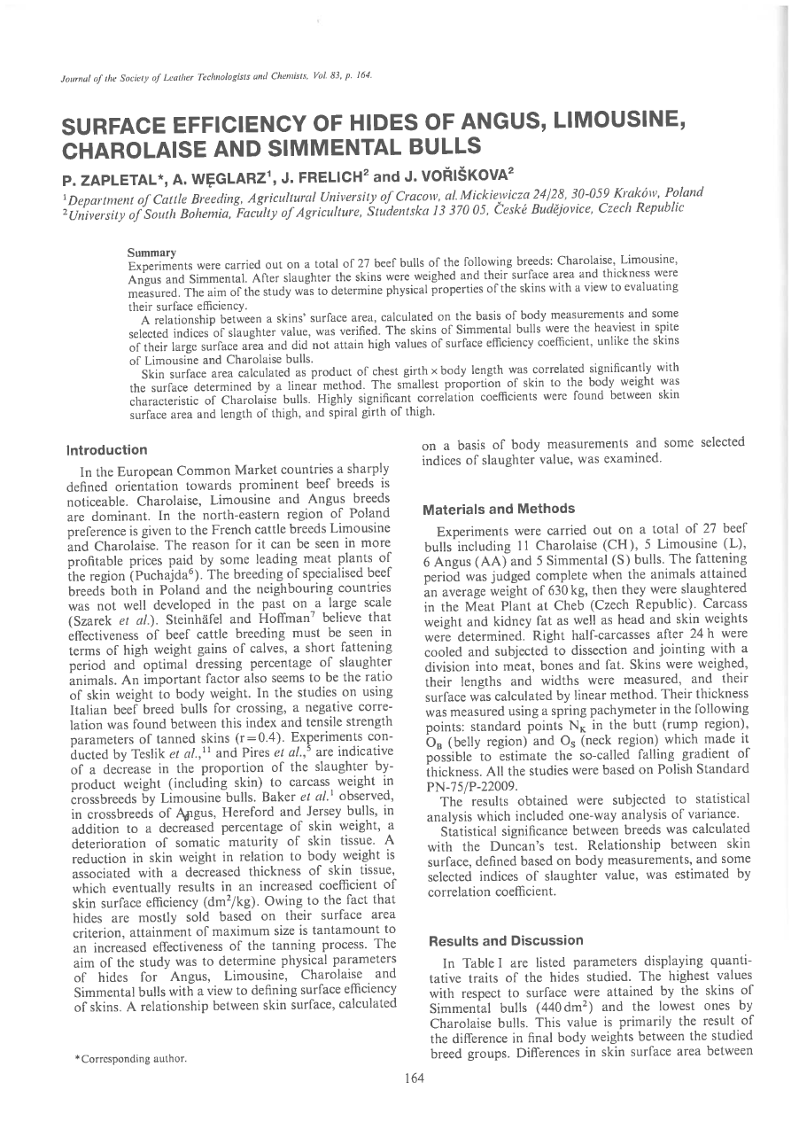 Surface Efficiency Of Hides Of Angus, Limousine, Charolaise And Simmental Bulls