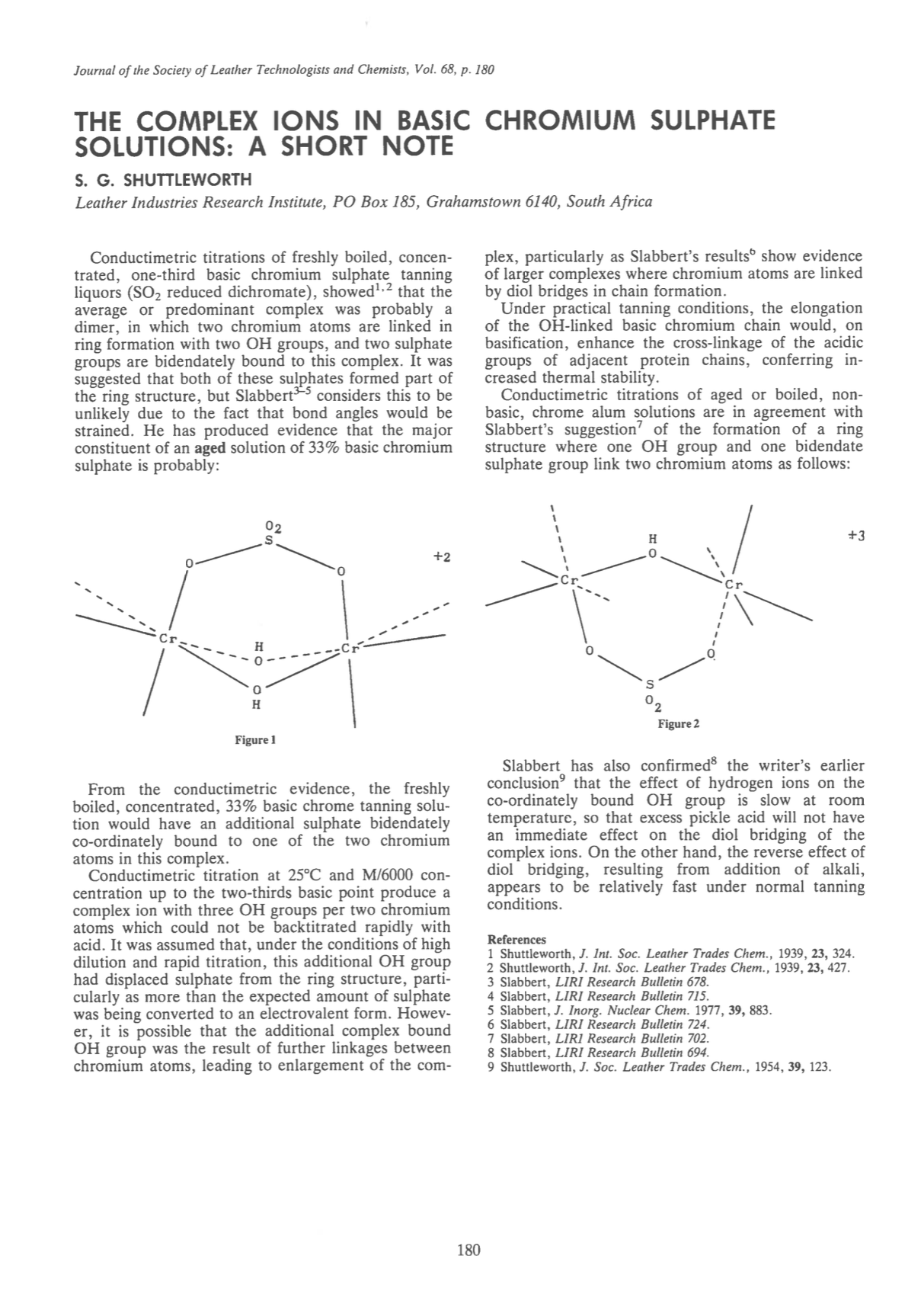 The Complex Ions in Basic Chromium Sulphate Solutions