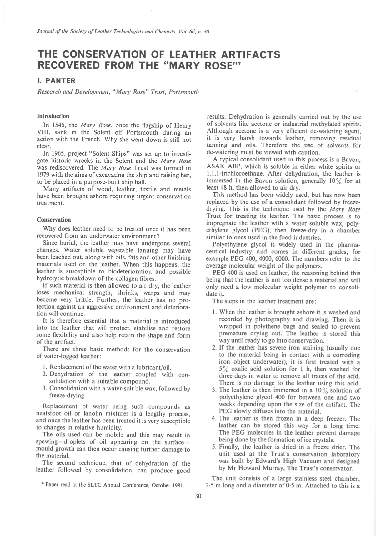 The Conservation of Leather Artifacts Recovered from the “Mary Rose”
