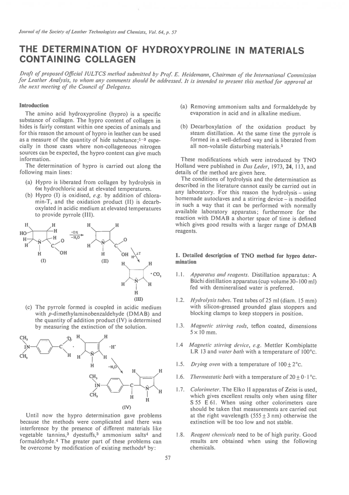 The Determination of Hydroxyproline in Materials Containing Collagen