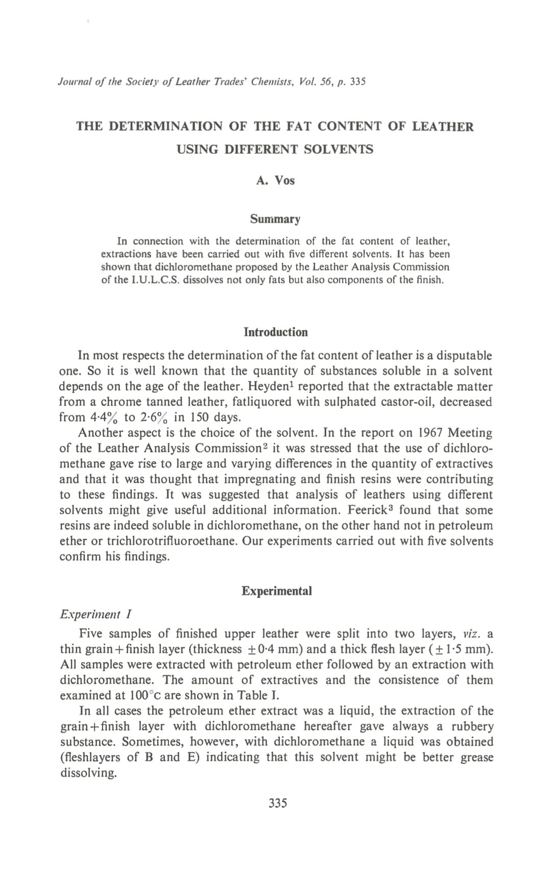 The Determination of the Fat Content of Leather Using Different Solvents