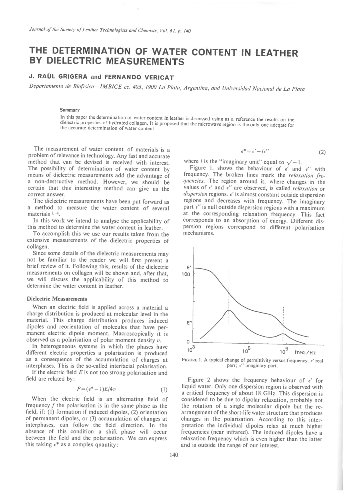 In this paper the determination of water content in leather is discussed using as a reference the results on the dielectric properties of hydrated collagen. It is proposed that the microwave legion is the only one adequate for the accurate determination of water content.