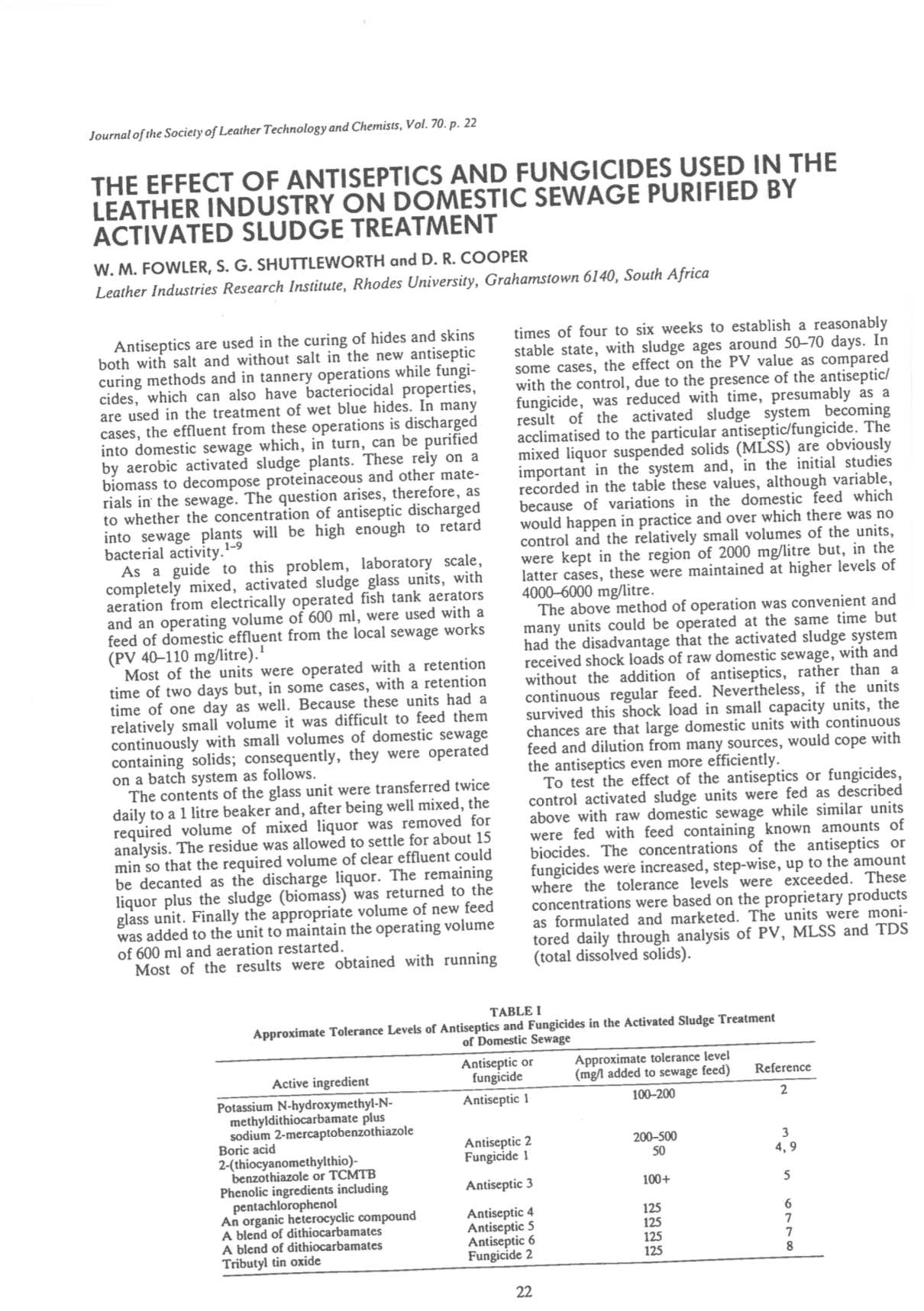 The Effect Of Antiseptics And Fungicides Used In The Leather Industry On Domestic Sewage Purified By Activated Sludge Treatment