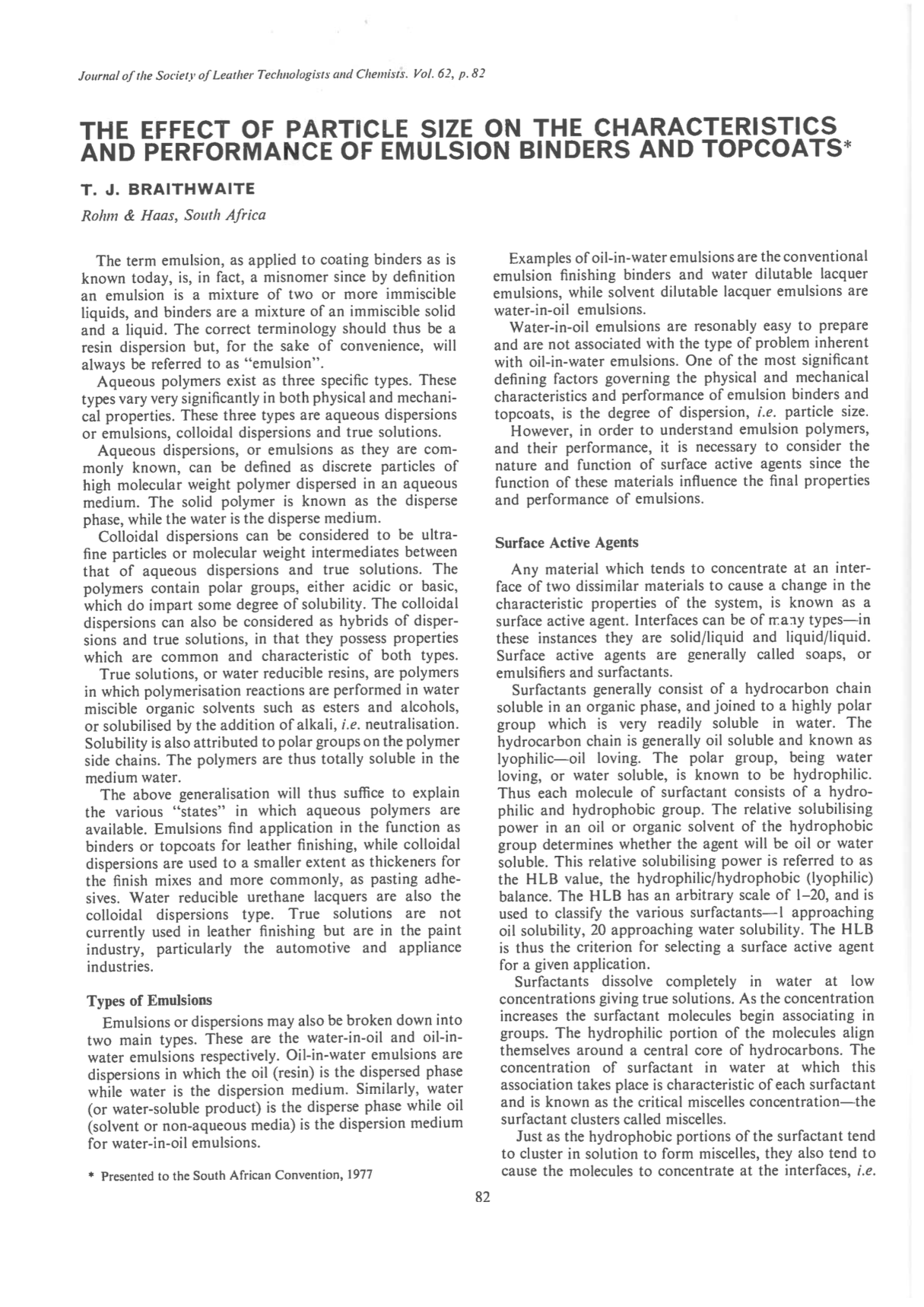 The Effect of Particle Size on the Characteristics and Performance of Emulsion Binders and Topcoats
