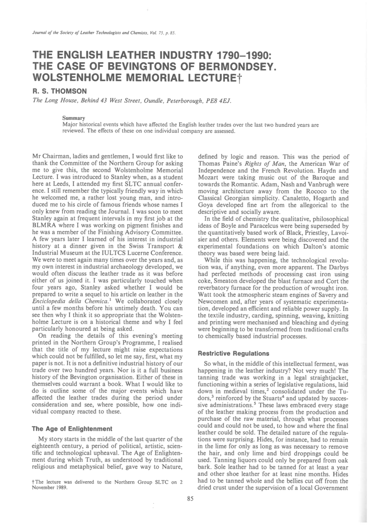The English Leather Industry 1790-1990: The Case of Bevingtons of Bermondsey