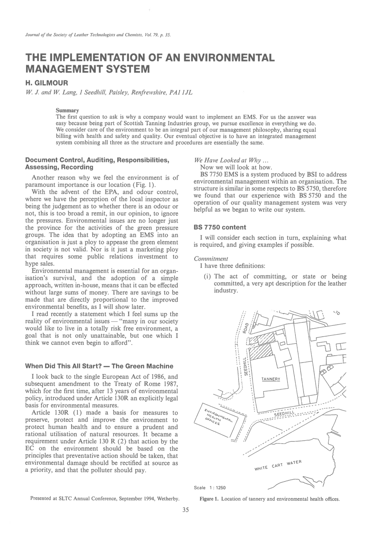 The first question to ask is why a company would want to implement an EMS. For us the answer was easy because being part of Scottish Tanning Industries group, we pursue excellence in everything we do. We consider care of the environment to be an integral part of our management philosophy, sharing equal billing with health and safety and quality. Our eventual objective is to have an integrated management system combining all three as the structure and procedures are essentially the same.